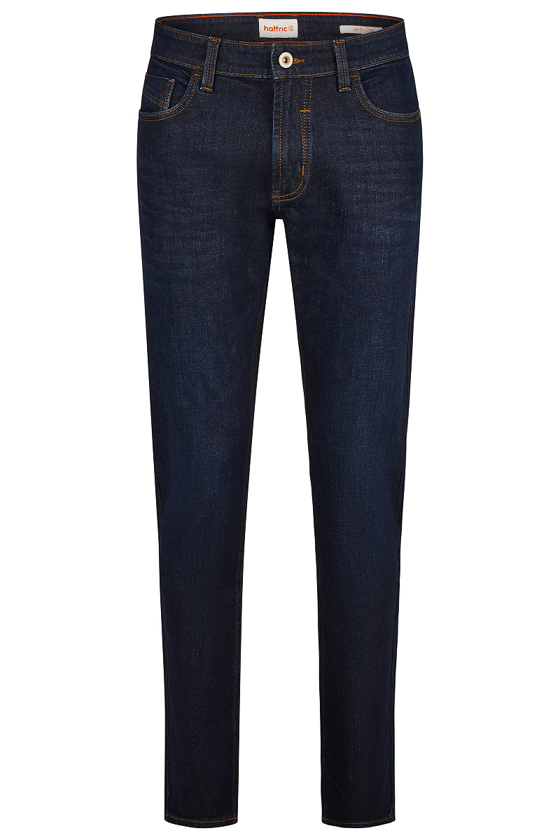 Mit dieser genauso bequemen wie robusten hattric Jeans kommst Du modisch perfekt durch den Herbst und den Winter! Sie hat einen kernigen Griff und ist für die kühle und kalte Jahreszeit wie geschaffen. Die hochwertige Qualität aus Baumwolle sowie einem kleinen, einprozentigen Elasthan-Stretch-Anteil schenkt Dir einen hervorragenden Tragekomfort, während die Slim Fit Passform eine schlanke Silhouette zaubert. Deine neue Herrenhose bringt selbstverständlich die typischen Merkmale einer echten hattric Jeans mit: Die Einschubtaschen mit der Coinpocket im vorderen Bereich beispielsweise, die aufgesetzten Gesäßtaschen, aber auch die markanten Nieten, die nicht nur als Eyecatcher fungieren, sondern den Taschen der Herrenhose auch eine zusätzliche Verstärkung bieten.