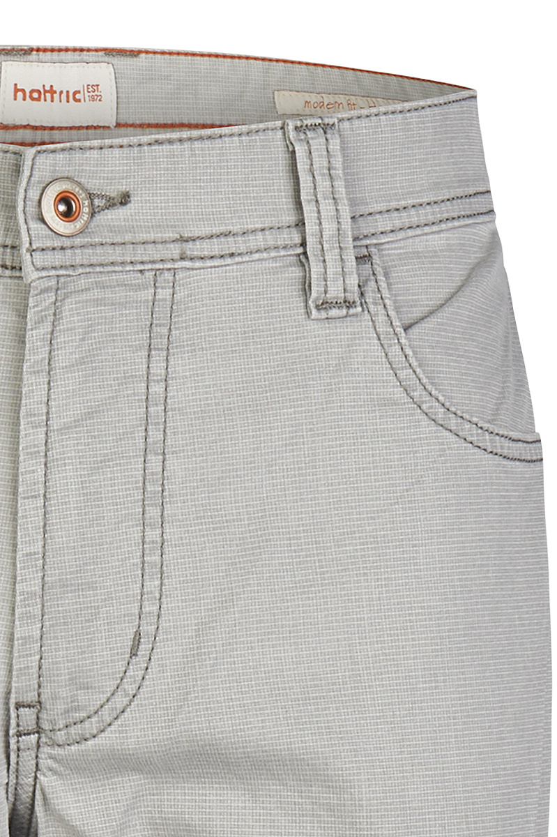 Der kernige Griff und die ganz leicht strukturierte Stoffqualität sind nur einige der Pluspunkte, die diese hattric Hose aus Baumwolle mit kleinem Elasthananteil mit sich bringt. Die Herrenhose hat ein schlanke Passform, ist aber durch Comfort Stretch dennoch sehr bequem und garantiert ein großes Maß an Bewegungsfreiheit. Mit einem coolen Shirt passt die hattric Hose perfekt in die Freizeit, sie macht aber auch, mit einem klassischen Hemd kombiniert, eine gute Figur im hektischen Büroalltag. Der pflegeleichte und strapazierfähige Stoff ist äußerst hautfreundlich und trägt sich auch bei hohen Temperaturen angenehm. Schöne Details der 5-Pocket-Hose sind die Stickereien auf den Gesäßtaschen.