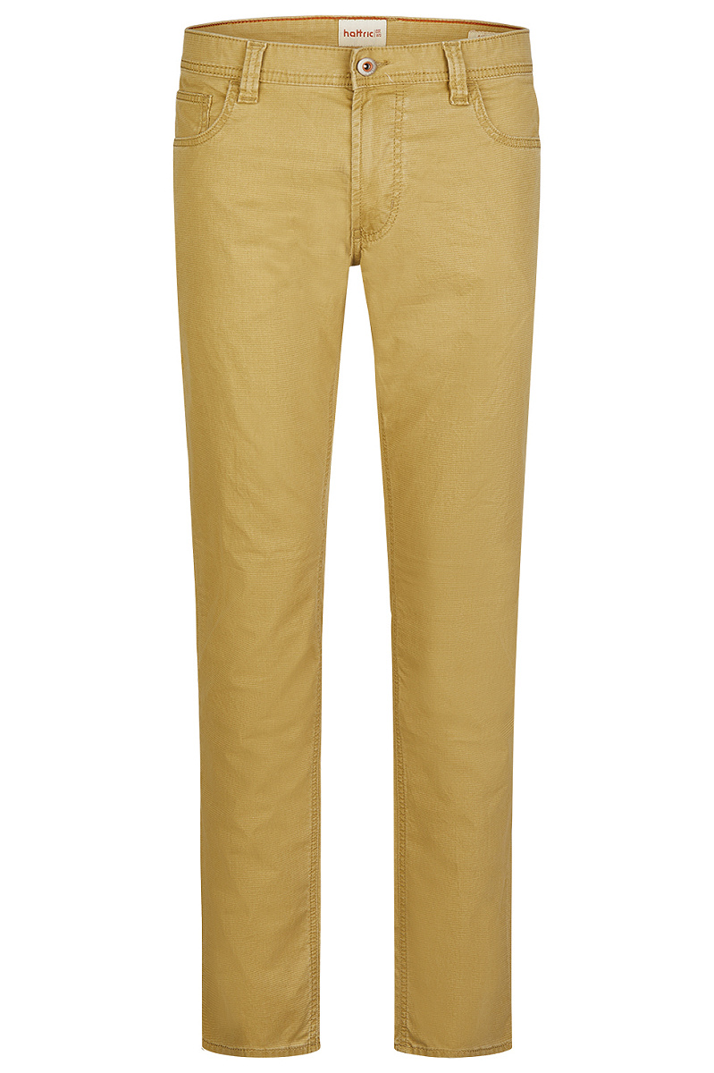 Der kernige Griff und die ganz leicht strukturierte Stoffqualität sind nur einige der Pluspunkte, die diese hattric Hose aus Baumwolle mit kleinem Elasthananteil mit sich bringt. Die Herrenhose hat ein schlanke Passform, ist aber durch Comfort Stretch dennoch sehr bequem und garantiert ein großes Maß an Bewegungsfreiheit. Mit einem coolen Shirt passt die hattric Hose perfekt in die Freizeit, sie macht aber auch, mit einem klassischen Hemd kombiniert, eine gute Figur im hektischen Büroalltag. Der pflegeleichte und strapazierfähige Stoff ist äußerst hautfreundlich und trägt sich auch bei hohen Temperaturen angenehm. Schöne Details der 5-Pocket-Hose sind die Stickereien auf den Gesäßtaschen.