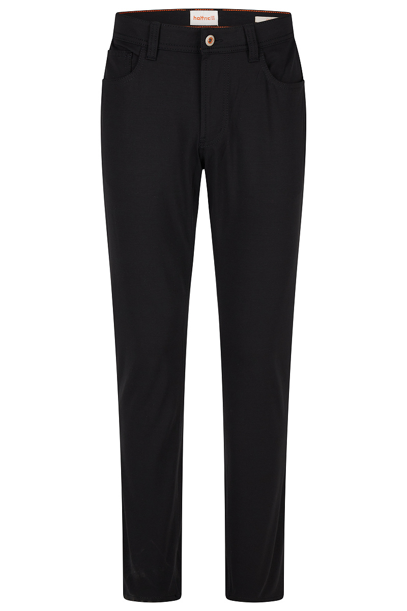 In der Herbst-/Winter-Kollektion von hattric findest Du diese wandelbare 5-Pocket-Herrenhose im Slim Fit schmal. Ideal für die kalte Jahreszeit, besteht sie aus strapazierfähigem, pflegeleichtem Baumwolljersey mit einem Polyester-Anteil. Zwei Prozent Elasthan machen das hochwertige Gewebe knitterfrei und pflegeleicht. Wie alle Hosen der Marke, zeichnet sich die vielseitige hattric Hose durch außerordentliche Bequemlichkeit und große Bewegungsfreiheit aus. Die Einschubtaschen vorne sind mit einer zusätzlichen Coinpocket ausgerüstet, die aufgesetzte Gesäßtasche ziert eine aufgesteppte Naht. Diese lässige Herrenhose mit Reißverschluss ist ein ideales Basic, in dem Du zu den verschiedensten Gelegenheiten eine männliche Ausstrahlung hast.