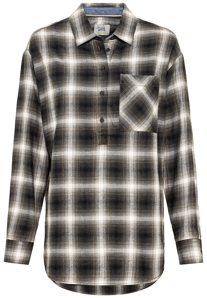 Mit der angesagten camel active Bluse im trendy Karo-Muster aus 100 % hochwertiger Baumwolle bist Du modisch up-to-date ausgestattet. Die hochwertige Damenbluse aus angenehm kuschelweicher Flanellware ist in Regular Fit gehalten, lang geschnitten und überzeugt mit eingearbeiteter Rückenfalte und tollen Kragendetails auf der Innenseite. Mit dieser camel active Bluse mit halber Knopfleiste und einer Brusttasche auf der linken Seite bist Du für jedes lässige Casual-Outfit bestens versorgt. Denn sie lässt sich leicht mit unzähligen Pants, Shirts und Jacken kombinieren. Kreiere Deinen persönlichen Herbst/Winter-Fashion-Look mit dieser wunderschönen Damenbluse.