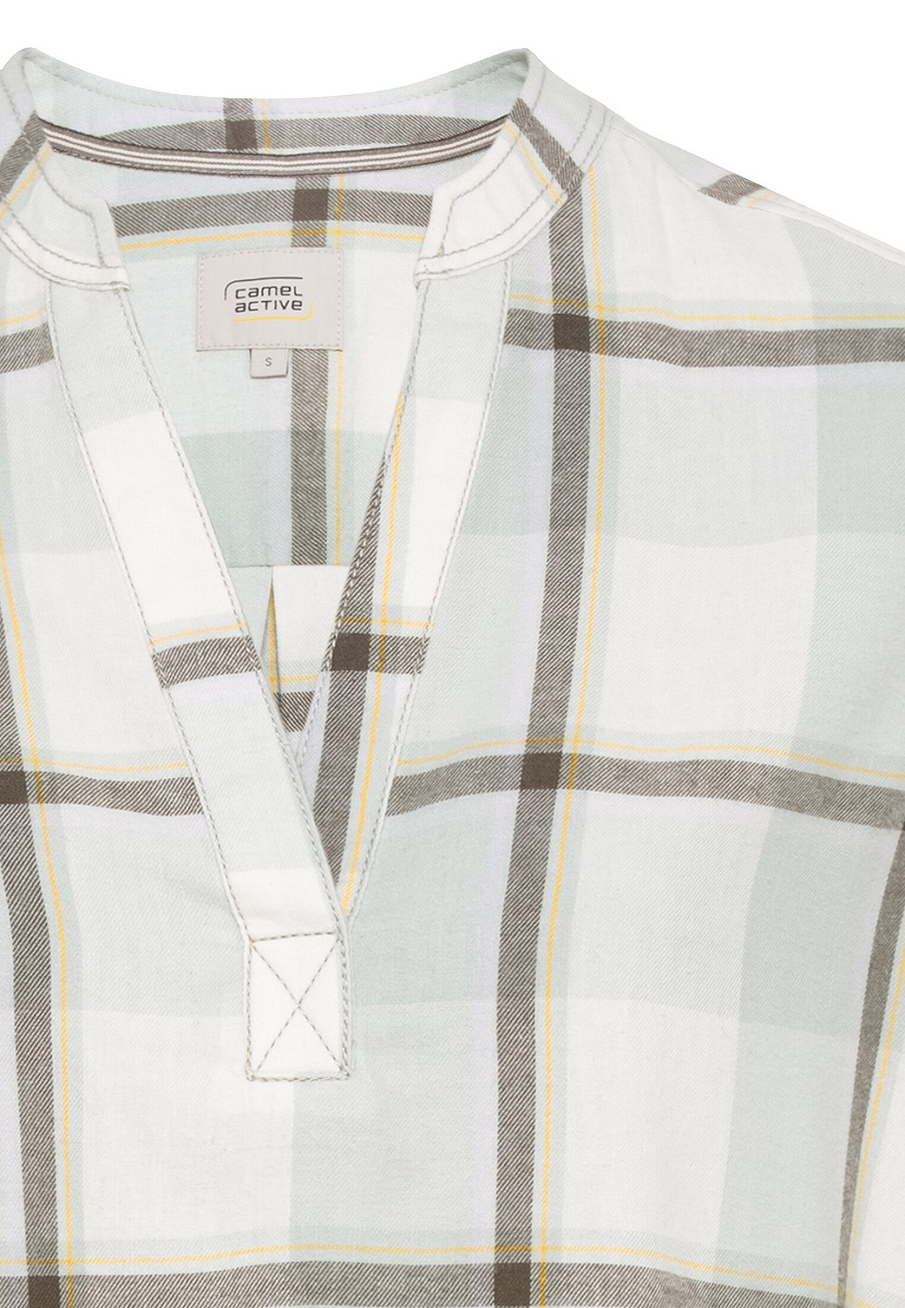 Die Karobluse aus Baumwollmix von camel active ist der ideale Begleiter für kühle Tage. Das leicht gebrushtes Flannel im Baumwollmix bietet angenehmen Tragekomfort und Wärme, während der Stehkragen mit V-Ausschnitt einen klassischen Look mit einem Hauch Eleganz verbindet. Das camel active Markenlabel aus Jacron am Saum unterstreicht die hohe Qualität dieser vielseitig kombinierbaren Bluse.