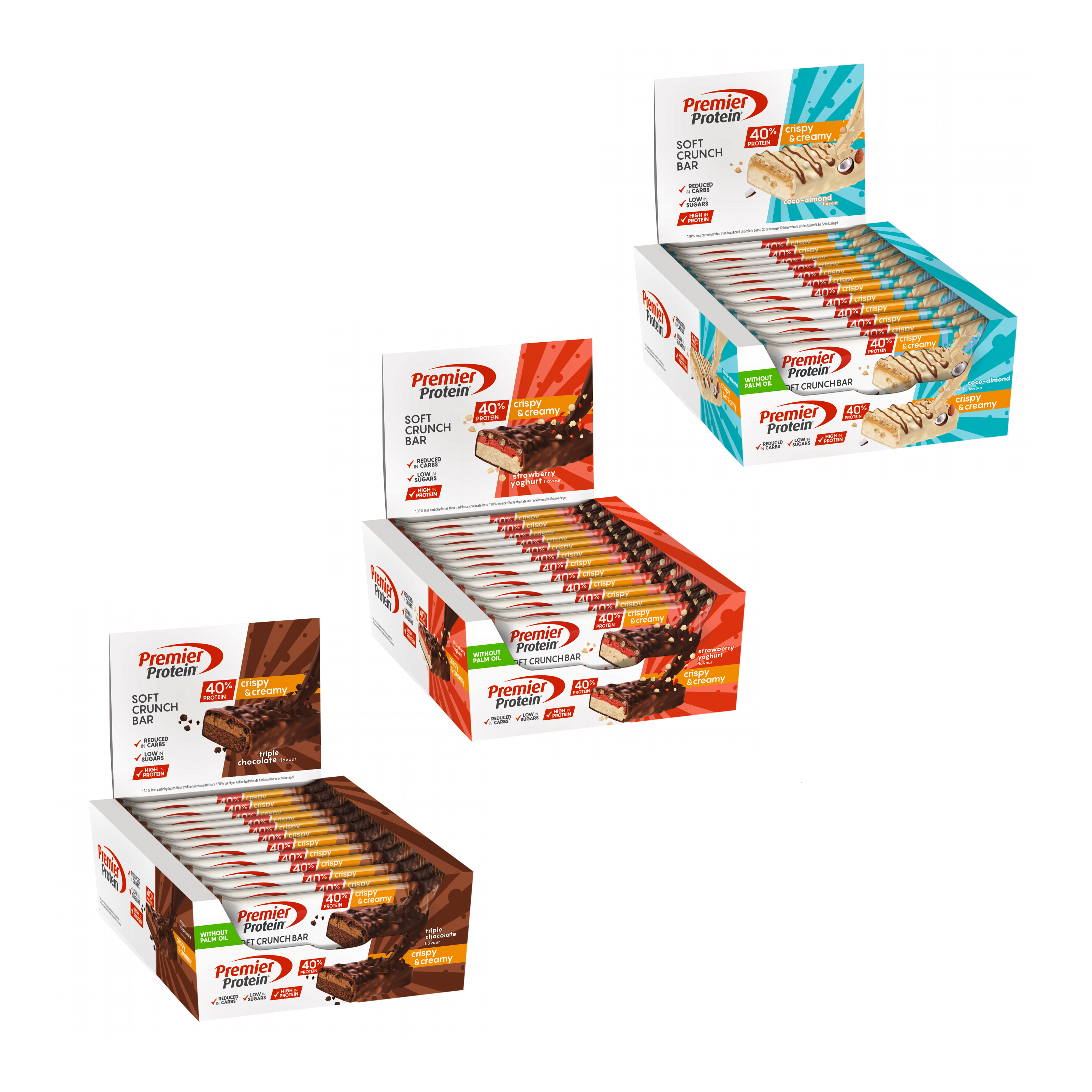 Premier Protein Soft Crunch 40% Bundle (3x12x40g)–Straw.Yogurt+Choco+Coco-Almond