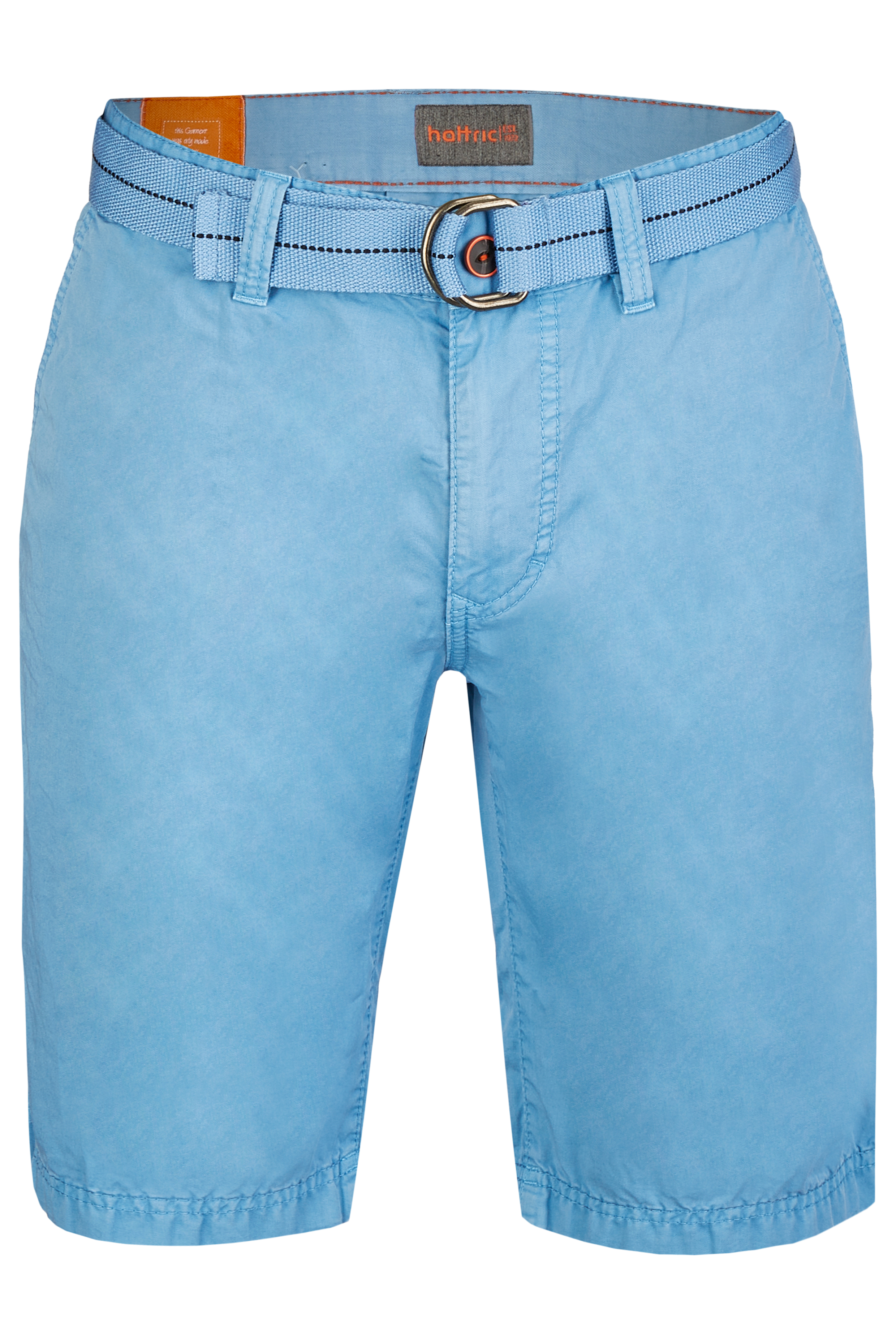 Die hattric Chino Shorts besteht aus reiner Baumwolle. Dadurch ist die Hose besonders hautfreundlich, atmungsaktiv und pflegeleicht. Zusätzlich besitzt sie einen angenehm weichen Griff und ist sehr strapazierfähig. Die Herren Chino Shorts stammt aus der Frühjahr- und Sommerkollektion und ist daher super für die wärmeren Tage geeignet. Durch die französischen Vorderhosentaschen wird ein schnelles und einfaches Eingreifen in die Tasche ermöglicht. Zusätzlich besitzt die Hose eine Uhrentasche. Der mitgelieferte Gürtel sorgt dafür, dass die Herrenhose angenehm sitzt und ist zusätzlich ein tolles Modeaccessoires.