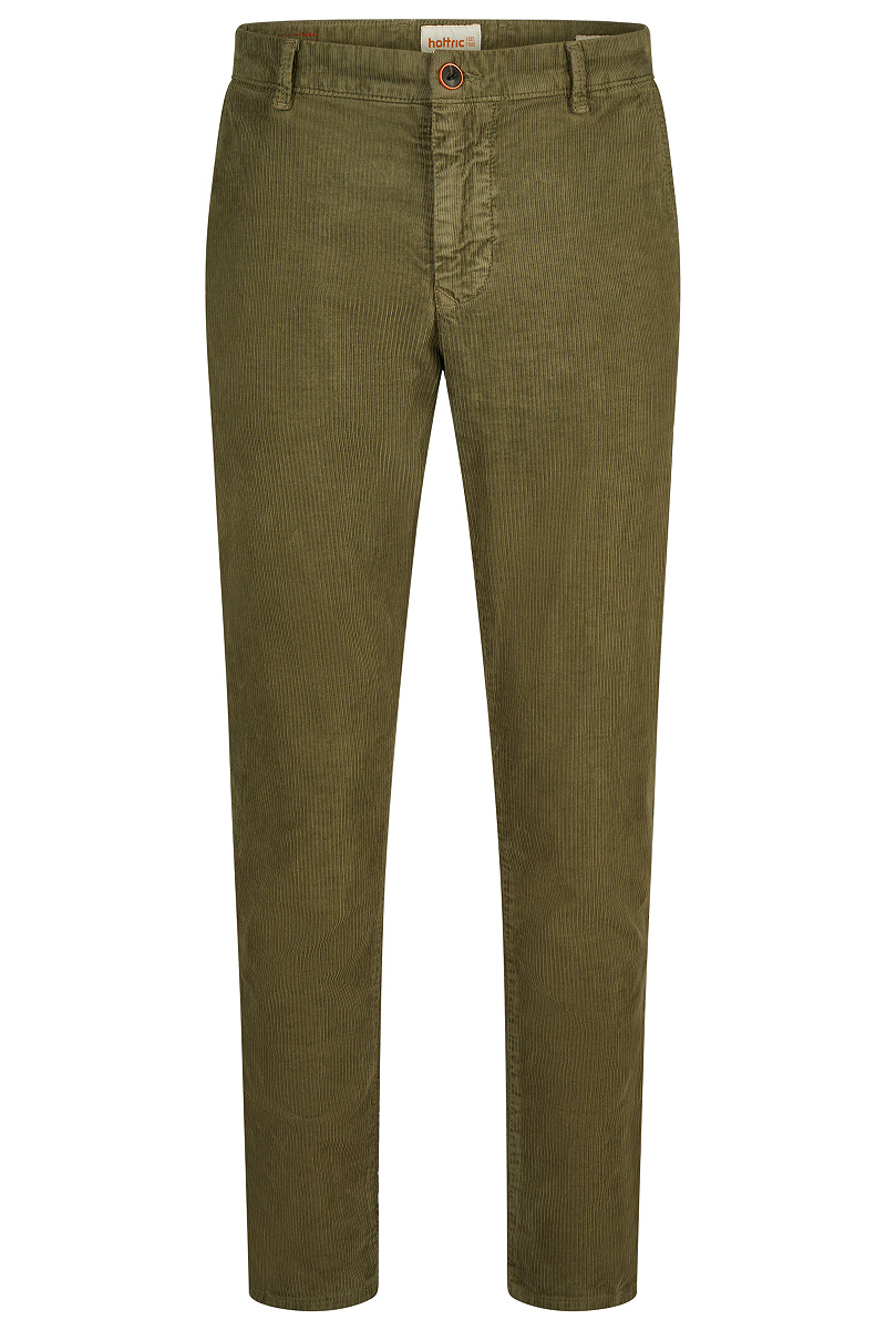 Du bist auf der Suche nach einer modischen und bequemen Hose für den Herbst? Dann ist die hattric Chino genau die richtige Hose für dich. Sie hat eine modische, französische Eingriffstasche mit Paspeltasche mit Knopfverschluss und ist in der Passform Modern Fit geschnitten. Zudem ist die Chinohose äußerst bequem. Für höchsten Tragekomfort sorgt das Material aus angenehmem Cord. Die hattric Chino hat einen angenehm weichen Griff und ist elastisch und formstabil. Die pflegeleichte Chinohose besteht zu 98% aus Baumwolle und zu 2% aus Elasthan.