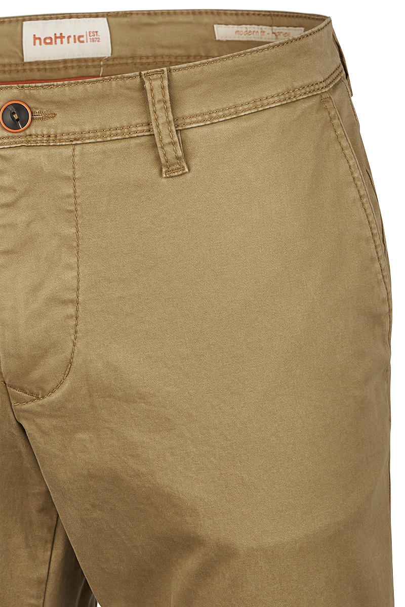 Die hattric Chinohose Harvey Gabardine ist eine moderne Herrenhose. Diese besteht aus 97 Prozent Baumwolle und 3 Prozent Elasten. Das Produkt bietet Dir höchsten Tragekomfort. Unser Modell aus der Herbst/Winter-Kollektion eignet sich für verschiedene Anlässe. Ob sportlich-elegant oder legere: Die hattric Chinohose ist modern geschnitten und überzeugt durch die schlanke bis normale Passform. Der Gabardine-Stoff sorgt aufgrund seiner Eigenschaften dafür, dass Deine Hose kaum knittert. Die Chinohose von hattric ist leicht zu pflegen. Weitere Extras der Herrenhose sind die französische Eingriffstasche mit Paspel sowie die Paspeltasche mit Knopfverschluss. In den Hosentaschen kannst Du außerdem Gegenstände verstauen.