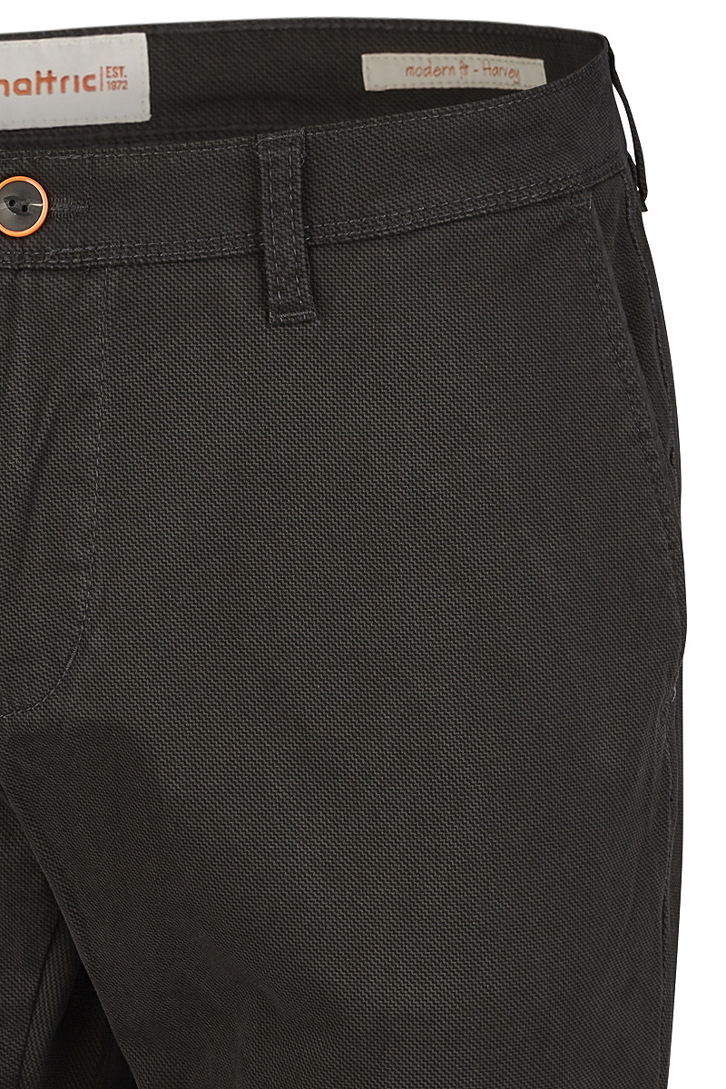 Mit der hattric Chinohose Harvey Gabardine hast Du immer einen maskulinen Auftritt - im Alltag, Urlaub oder zum festlichen Anlass. Das Geheimnis dieser Herrenhose liegt in ihrer Vielseitigkeit und Funktionalität. Der etwas dickere Gabardine für kühle Tage besteht aus 97 Prozent Baumwolle und 3 Prozent Elasthan und sorgt für Wärme und Bequemlichkeit. Dieses Material ist äußerst strapazierfähig und dazu pflegeleicht. Die Herrenhose von hattric hat vorne schräge französische Eingriffstasche mit Paspel und hinten eine Paspeltasche mit Knopfverschluss. Der Hosenschlitz ist mit einem Reißverschluss ausgestattet. Die praktischen Schlaufen sorgen für einen perfekten Sitz des Gürtels. In der Slim Fit-Passform machst Du stets eine gute Figur.