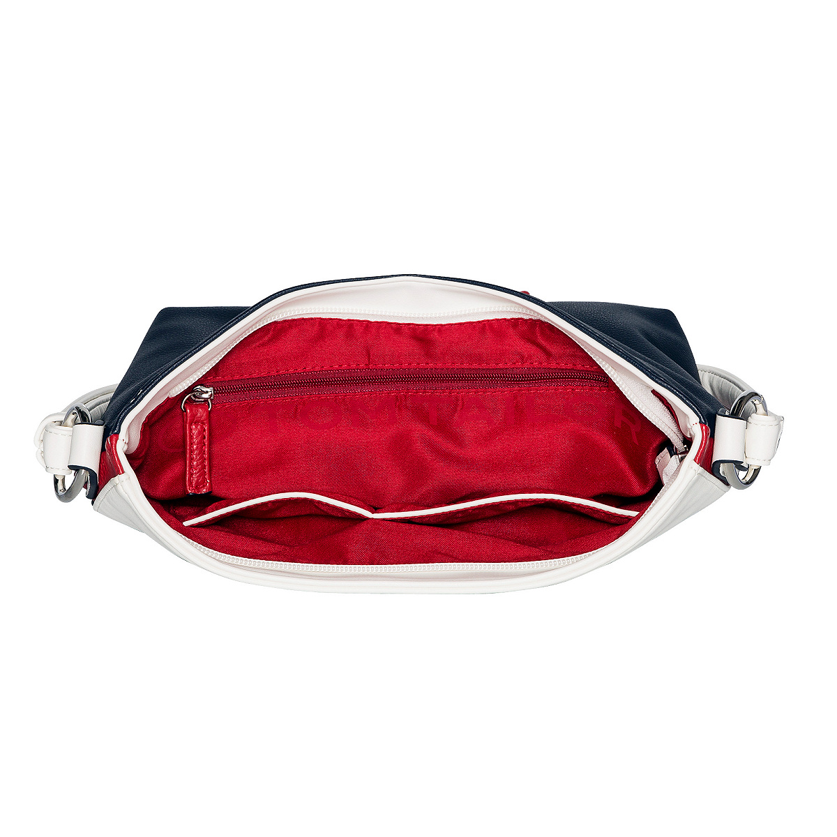 - Innen mit 1 Reißverschlussfach, 1 Smartphone-Fach, 1 Steckfach und 1 langer verstellbarer Schulterriemen