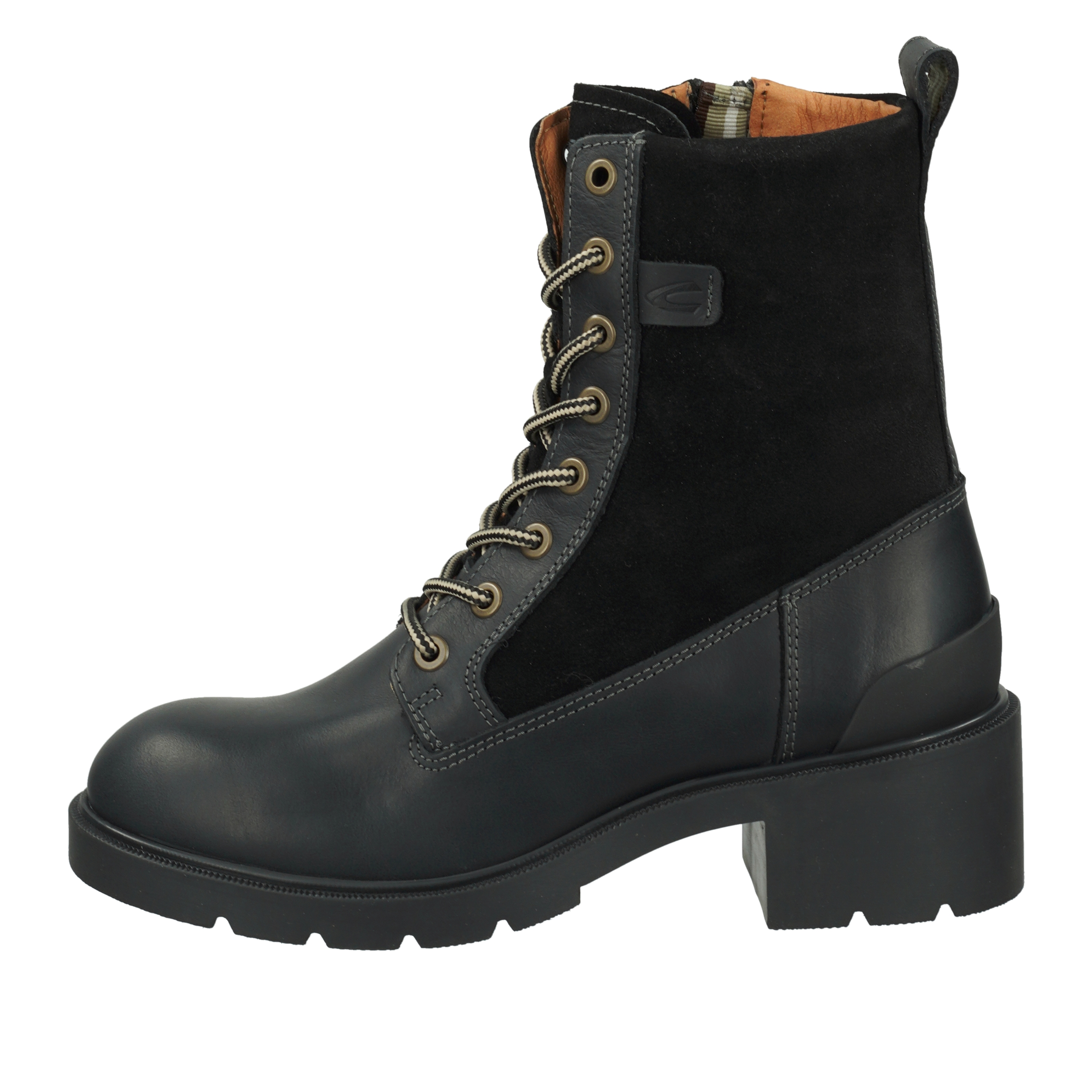 Ein modischer Schnürboot mit klassischer Leistenführung und schmalen Schaft, der absolut outdoortauglich ist. Das Obermaterial ist eine Kombination aus hochwertigem Leder und Veloursleder. Die rutschhemmende Sohle mit mittelhohem Absatz ist aus leichtem TR und hat viel Grip.