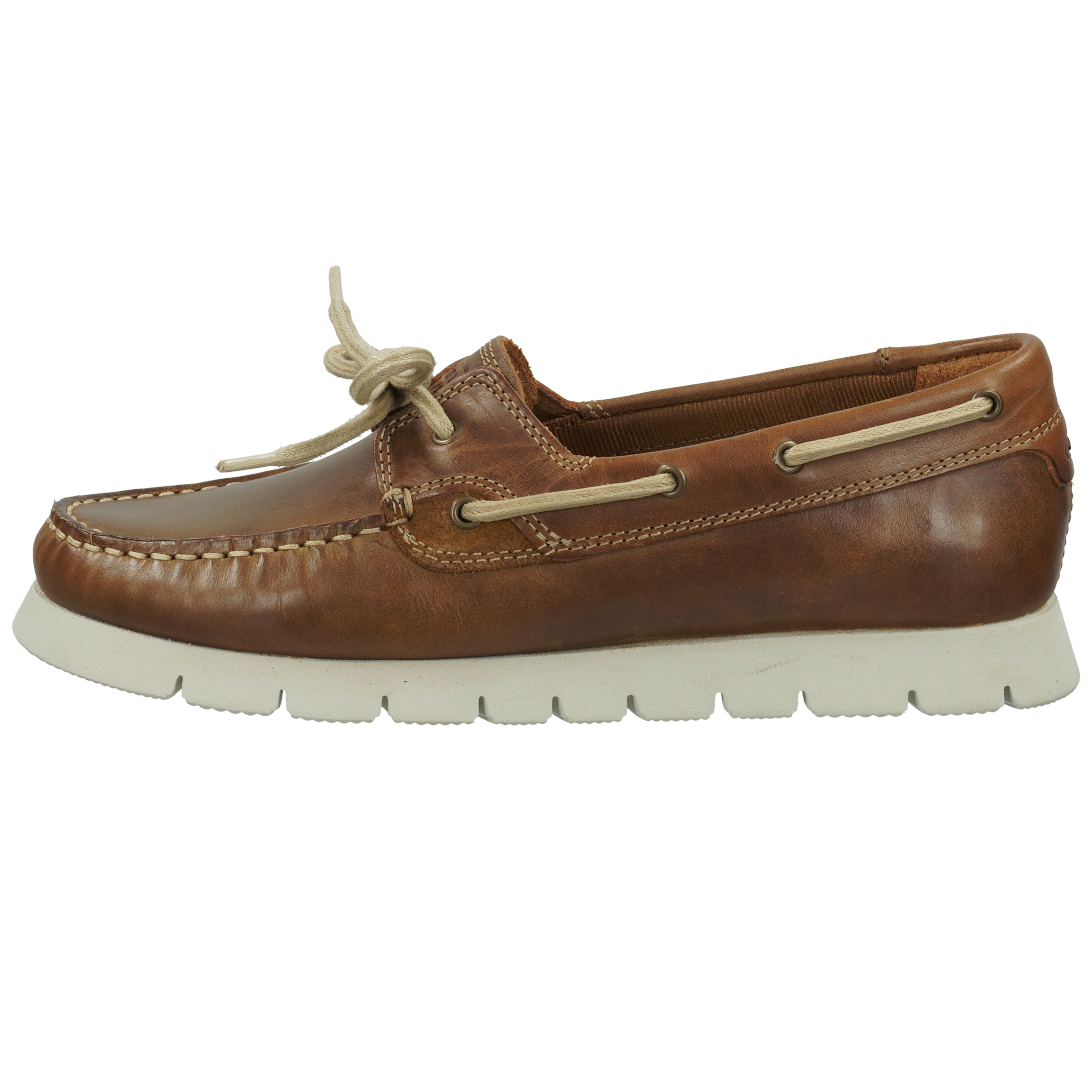 Klassischer Bootsschuh mit typischer 360-Grad Schnürung aus hochwertigem Leder, Ziernähten und dezentem Branding im Fersenbereich. Die Decksohle ist aus Leder und hat einen Recovery Foam aus Recyclingmaterial. Mit einer höheren flexiblen Gummiaußensohle ist der Schuh trittfest und rutschhemmend.