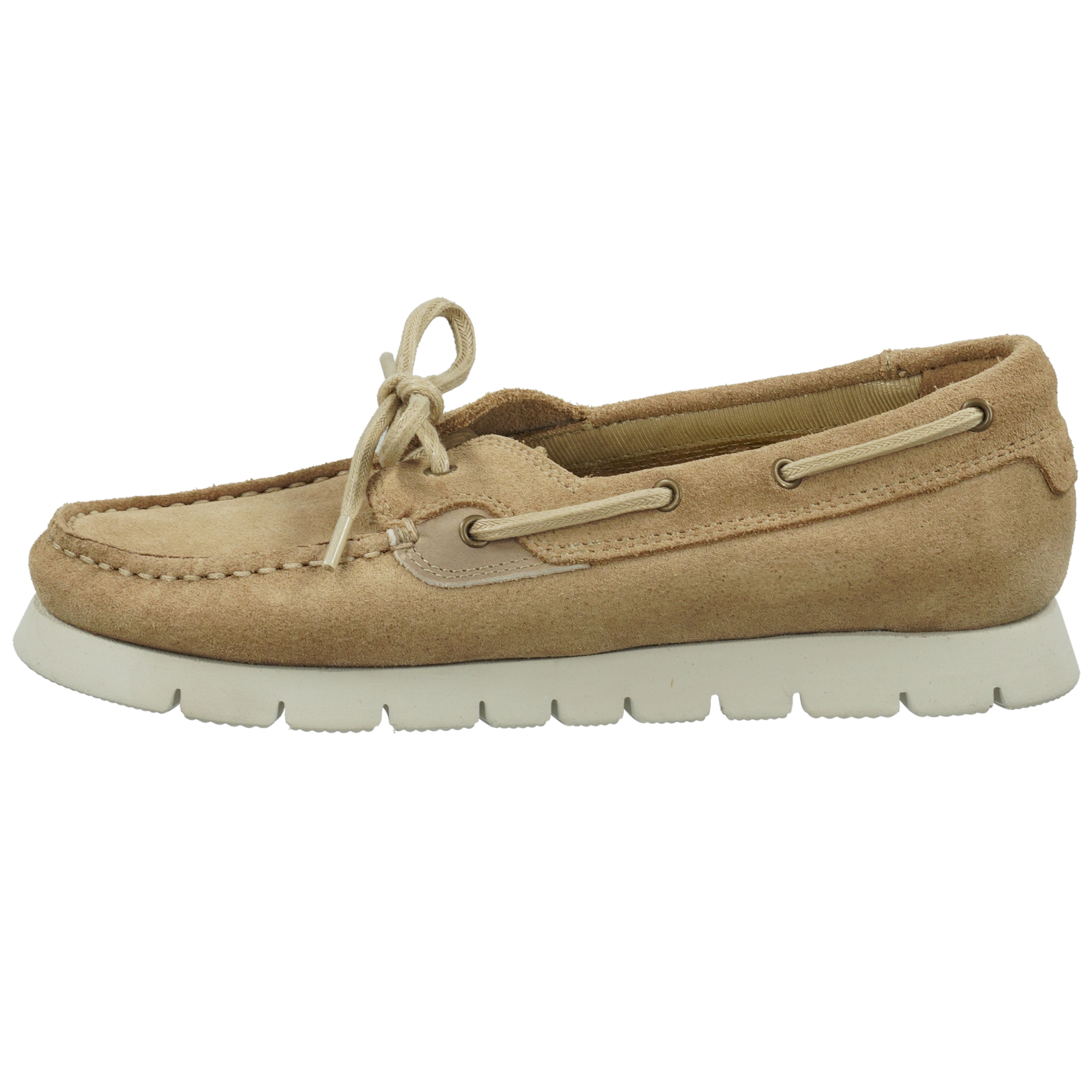 Klassischer Bootsschuh mit typischer 360-Grad Schnürung aus hochwertigem Veloursleder, Ziernähten und dezentem Branding im Fersenbereich. Die Decksohle ist aus Leder und hat einen Recovery Foam aus Recyclingmaterial. Mit einer höheren flexiblen Gummiaußensohle ist der Schuh trittfest und rutschhemmend.