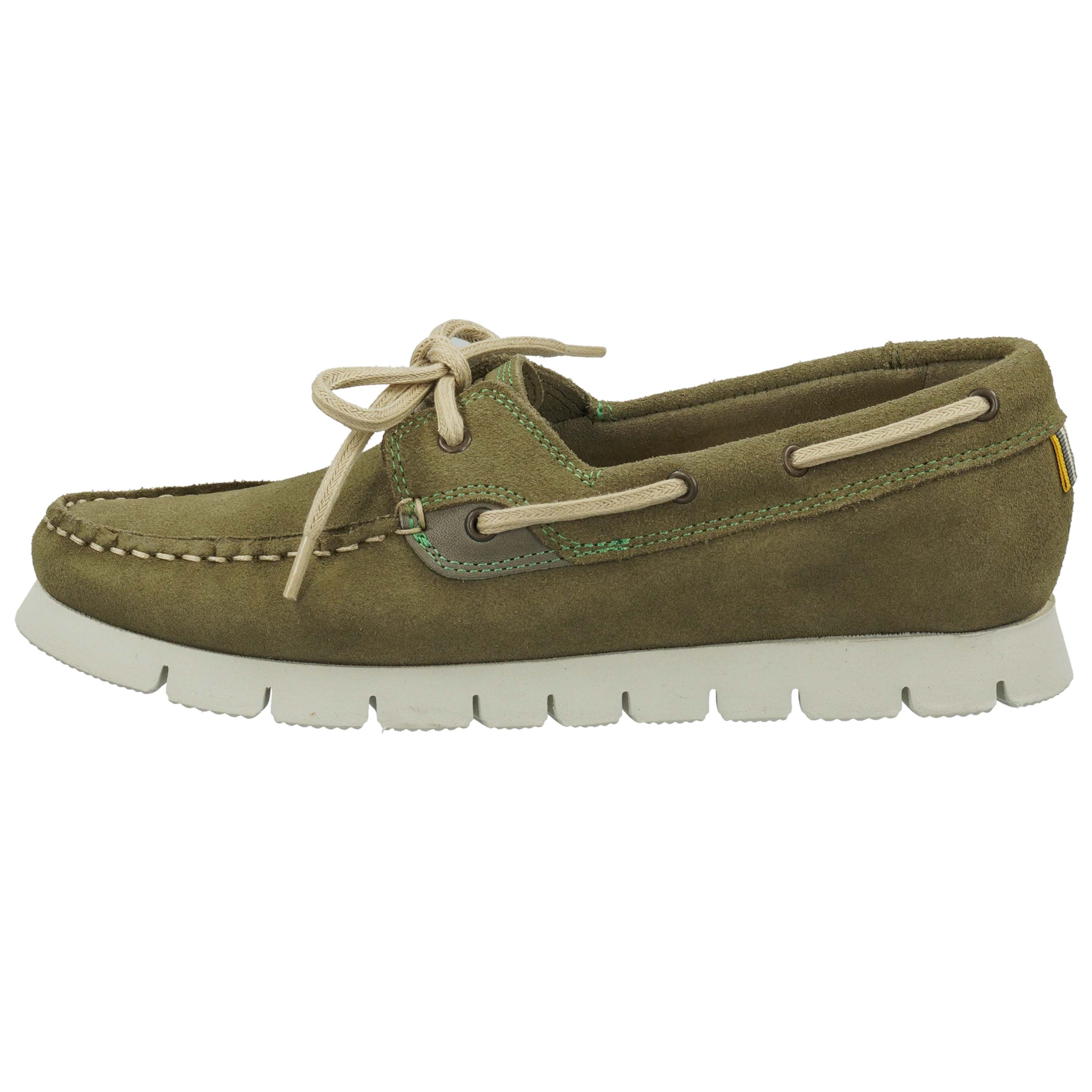 Klassischer Bootsschuh mit typischer 360-Grad Schnürung aus hochwertigem Veloursleder, Ziernähten und dezentem Branding im Fersenbereich. Die Decksohle ist aus Leder und hat einen Recovery Foam aus Recyclingmaterial. Mit einer höheren flexiblen Gummiaußensohle ist der Schuh trittfest und rutschhemmend.