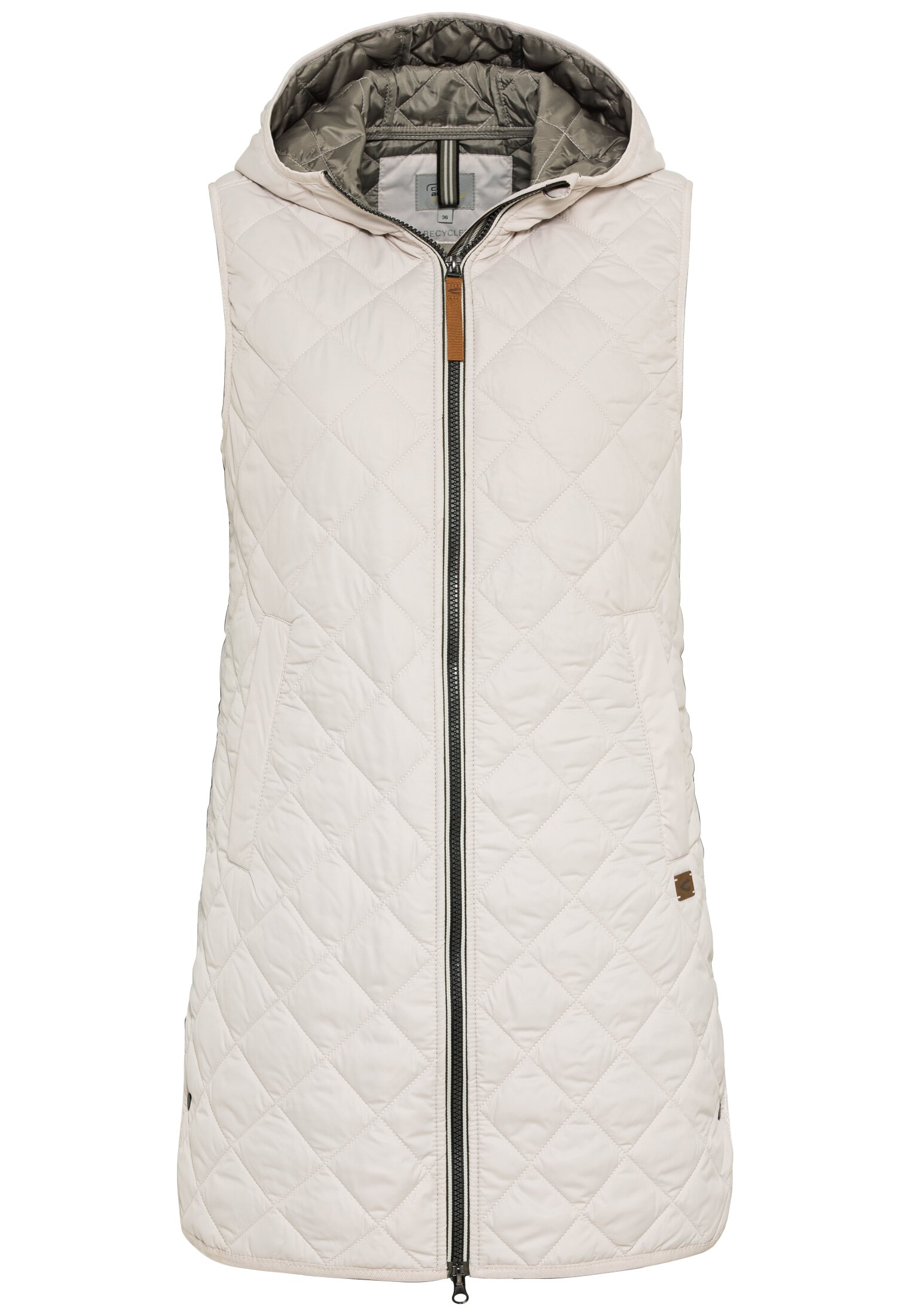 Die camel active Steppweste aus recyceltem Polyester passt immer dann, wenn das Wetter nicht so genau weiß, was es will. Sie ist nicht nur wasserabweisend und winddicht, sondern auch komplett daunenfrei gearbeitet. Für einen coolen und dennoch eleganten Look kann die Damen Steppweste mit Jeans und Stoffhosen kombiniert werden. Der Metallic-Schriftzug "Adventure" an der festen Kapuze ist ebenso ein schönes Detail der gesteppten Weste, die schnell zum neuen Liebling im Kleiderschrank wird, wie der Bequemlichkeit dienende Seitenschlitz mit Druckknopf. Das Markenlogo ist dezent sichtbar auf dem Zipper des Reißverschlusses und auf dem Lederpatch an der linken Eingrifftasche angebracht.