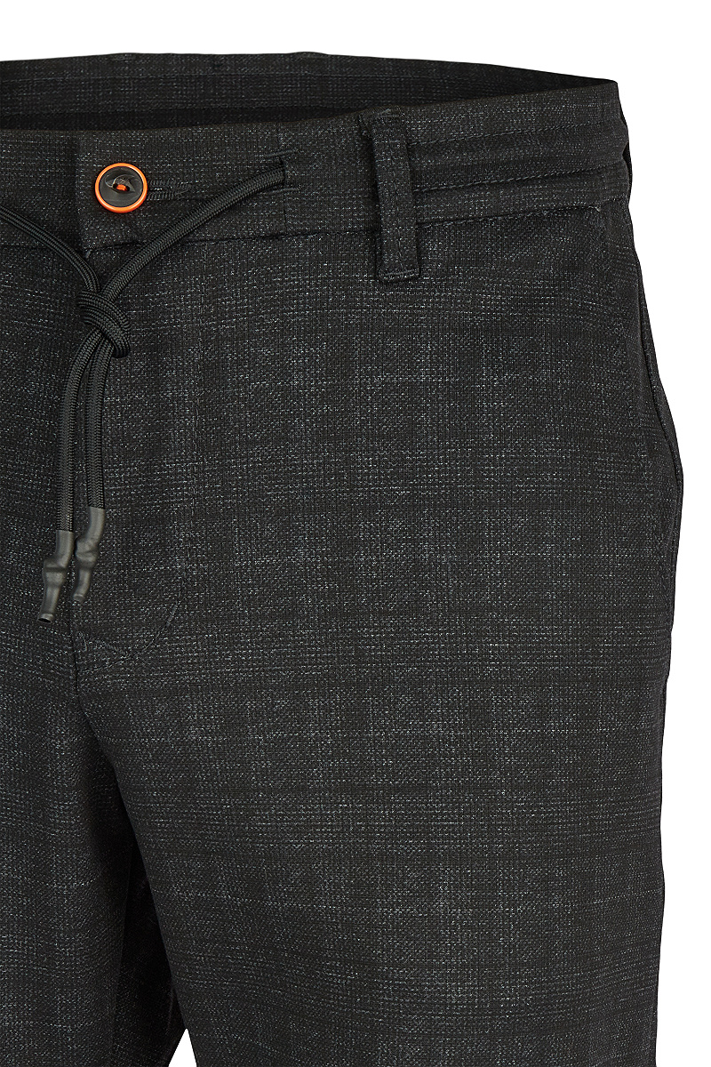 Die hattric Herren-Chinohose Dan aus der neuen Herbst/Winter-Kollektion von 2022 präsentiert sich Dir in einem legeren und modernen Look. In der Materialmischung sind 39 % weiche Viskose, 29 % pflegeleichter Polyester, 27 % strapazierfähiges und schnelltrocknendes Polyamid sowie 5 % formgebendes Elasthan enthalten. So beindruckt Dich die hattric Chinohose mit ihrer hohen Elastizität und einem bequemen Tragegefühl. Die Chino hat eine verkürzte Beinlänge und die Fußweite beträgt 34 cm. Ein modisches Karo-Muster macht das Design der Herren-Chinohose in Jersey-Qualität aus. Diese Hose ist genauso bequem wie Deine Jogginghose: Dafür sorgt eine besondere Webtechnik! Abgerundet wird der hohe Tragekomfort der hattric Chinohose durch einen flexiblen Bund mit Tunnelzug und Jogging-Kordel.