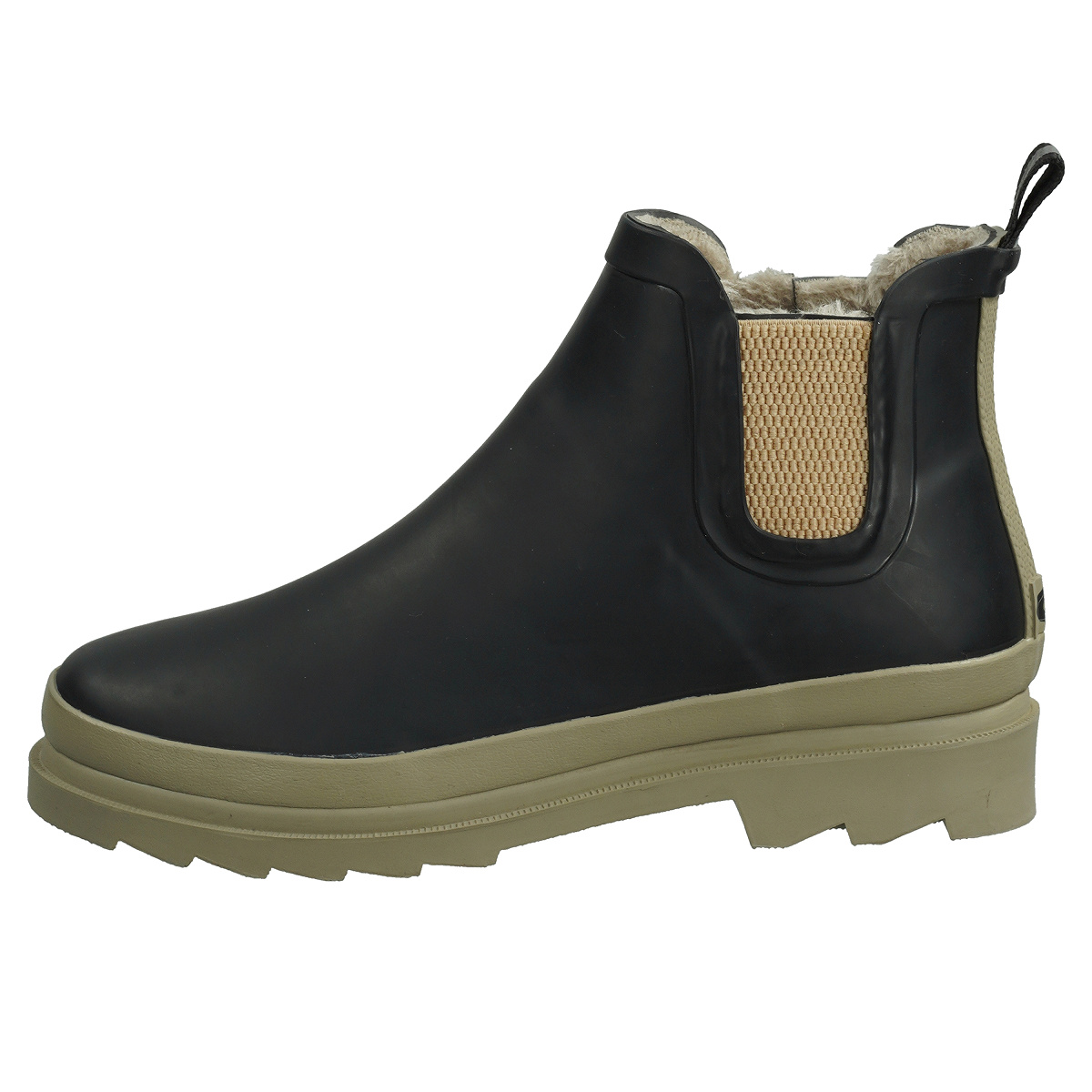 Ein Regenstiefel im Chelsea-Stil für ein modisches Statement bei Wind und Wetter. Das Obermaterial ist wasserdicht durch echtes Gummi mit Elasikteinsätzen. Ein Fellfutter sorgt für kuschelig warme Füße, die Innensohle ist herausnehmbar. Die profilierte Sohle in Kontrastfarbe hat extra viel Grip.