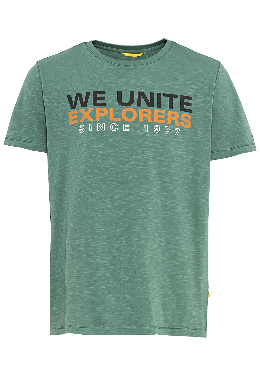 Das T-Shirt aus Organic Cotton stammt aus der camel active Herbst/Winter-Kollektion und überzeugt auf Anhieb mit einem coolen Print. Hergestellt aus reiner Bio-Baumwolle in Slub Jersey-Qualität ist das atmungsaktive Herrenshirt angenehm zu tragen und die perfekte Wahl für Deine Freizeitaktivitäten. Der normale, lose Schnitt und der bequeme Rundhalsausschnitt perfektionieren den Tragekomfort. Optisch glänzt das camel active T-Shirt aus Organic Cotton mit einem Statement auf der Brust, während die camel active Logostickerei auf dem linken Oberarm die hochwertige Qualität betont. Das Herrenshirt ist mit seinem modischen Design ein richtiger Allrounder, der auch in Deinem Kleiderschrank nicht fehlen sollte.