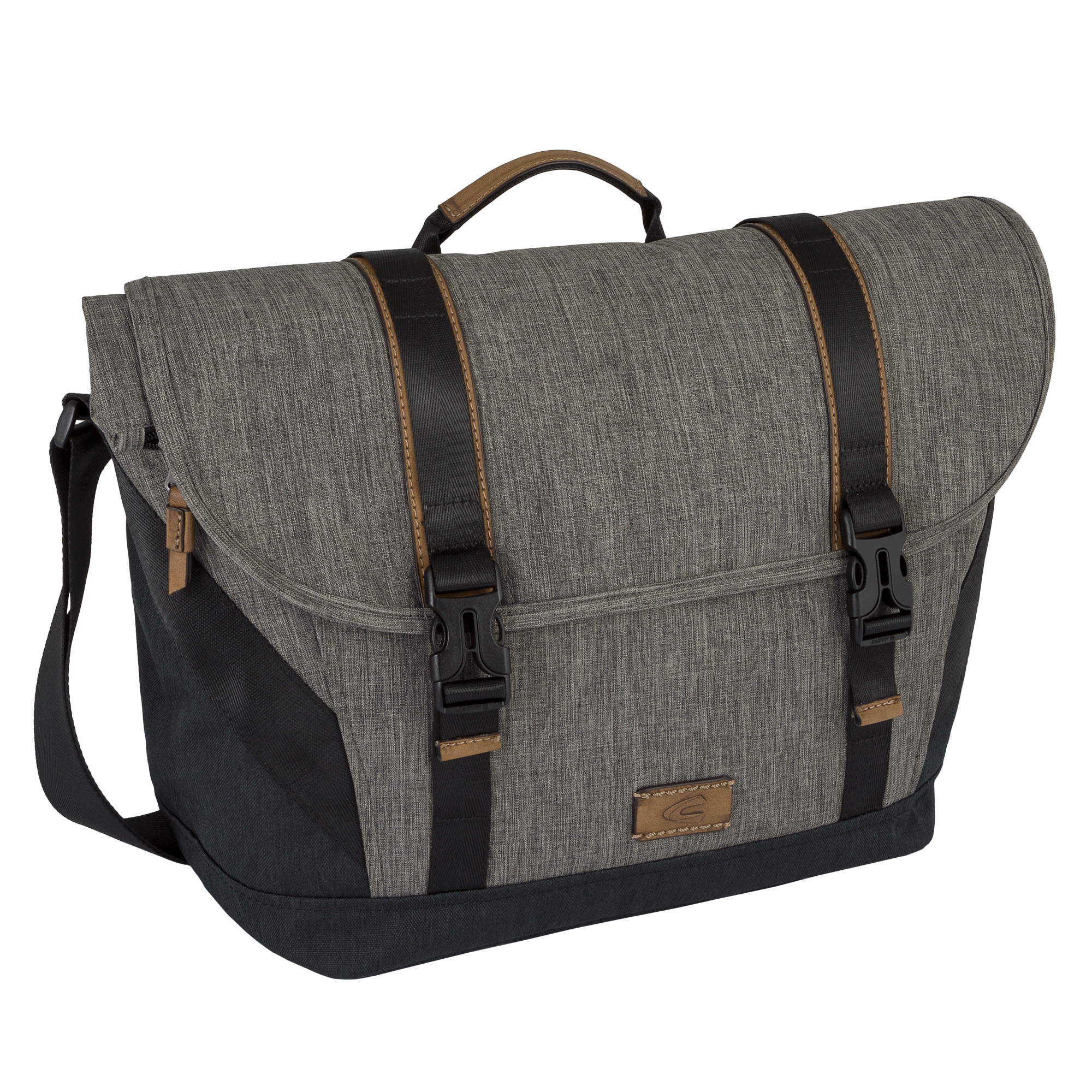 - zwei Steckverschlüssen auf dem Überschlag und eine Vortasche mit Klettverschluss