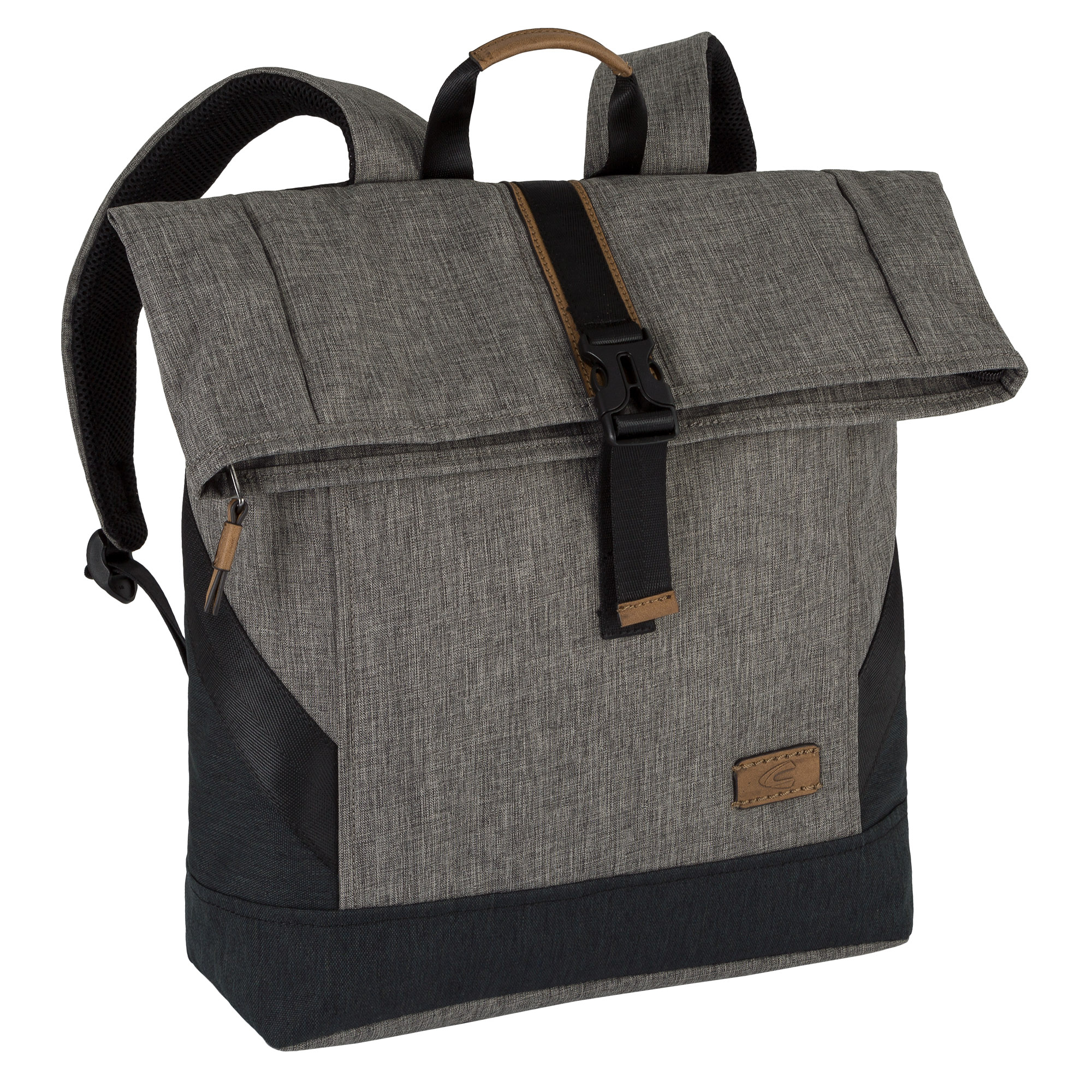 - ein Steckverschluss auf dem Überschlag, eine Vortasche mit Klettverschluss sowie ein Rückfach mit Zipper