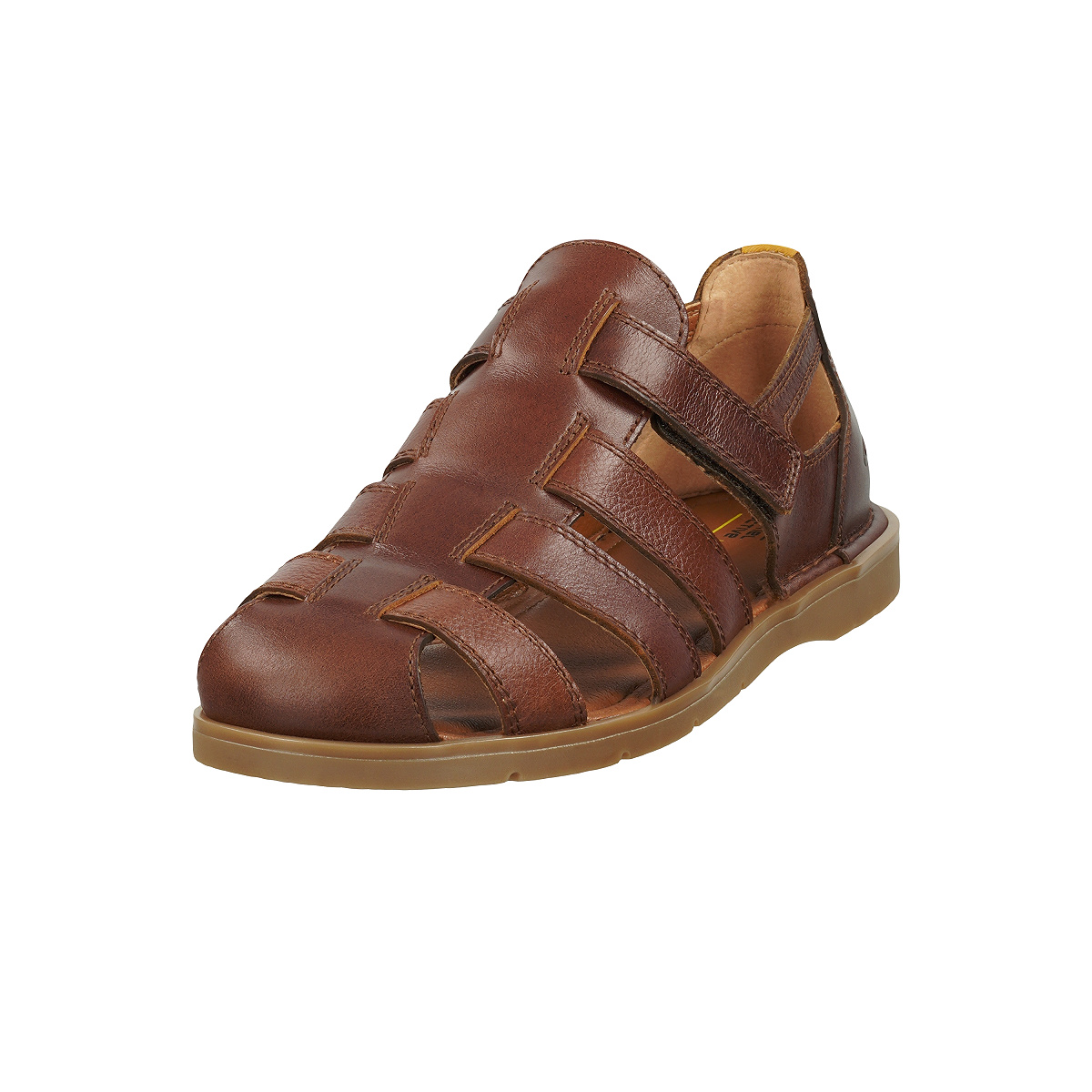 Rustikale, geschlossene Freizeit-Sandale aus hochwertigem Leder mit verstellbarem Klettriemen für eine optimale Passform am Fuß. Mit Leder Innensohle. Die ruschhemmende, leichte EVA-Laufsohle sorgt für den richtigen Tritt.