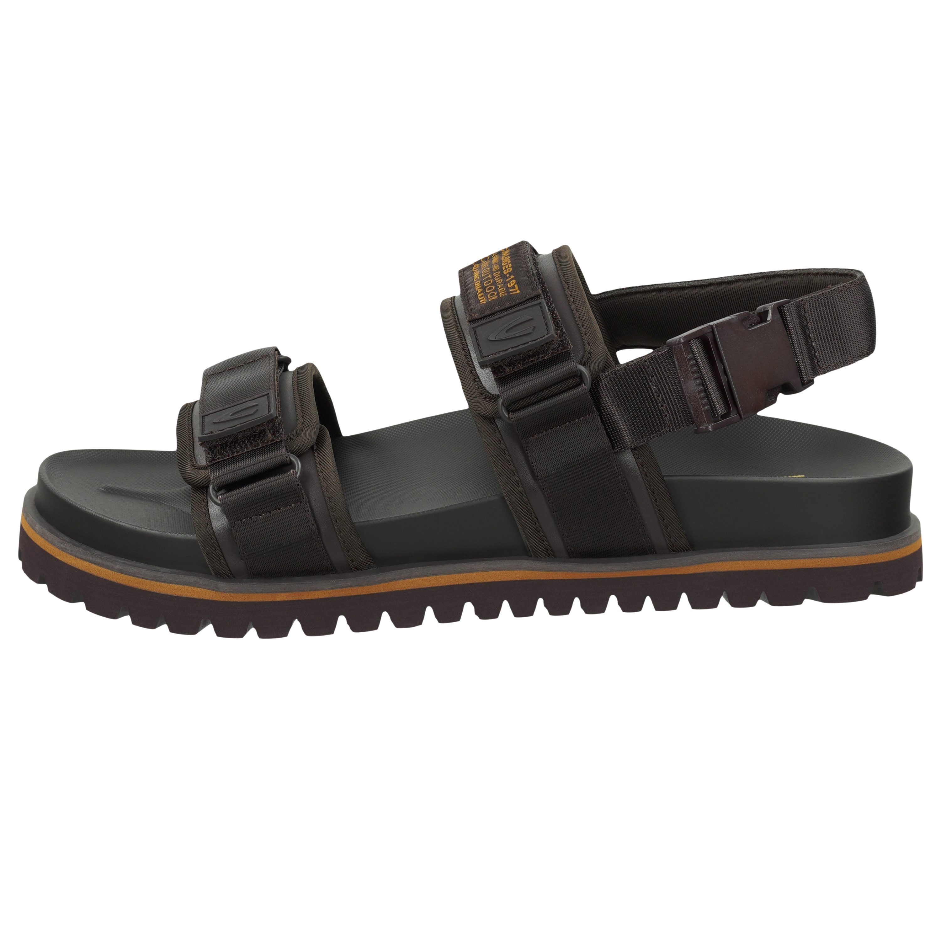 Diese luftig-leichte Trekkingsandale aus Synthetik bietet absoluten Komfort im Sommer! Die höhere, profilierte EVA-Laufsohle ist farblich auf das Obermaterial abgestimmt und bietet Trittsicherheit. Durch die Klettverschlüsse am Fußspann und an der Ferse können Sie die Sandalen optimal an Ihre Füße anpassen. Mit dezentem Logobranding.