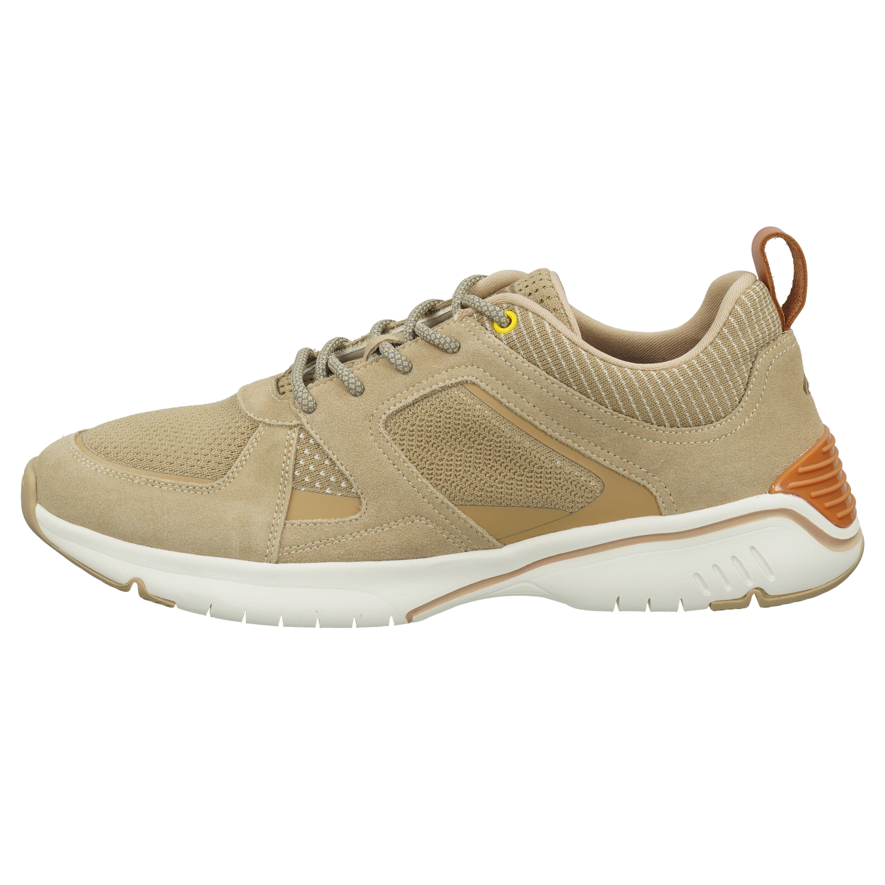 Junger, leichter Sneaker mit Obermaterial aus hochwertigem Leder und Veloursleder und einer weißen Gummisohle. Für einen angenehmen Tragekomfort sorgt das textile Innenfutter und die Decksohle aus einem Recovery Foam aus Recyclingmaterial.
