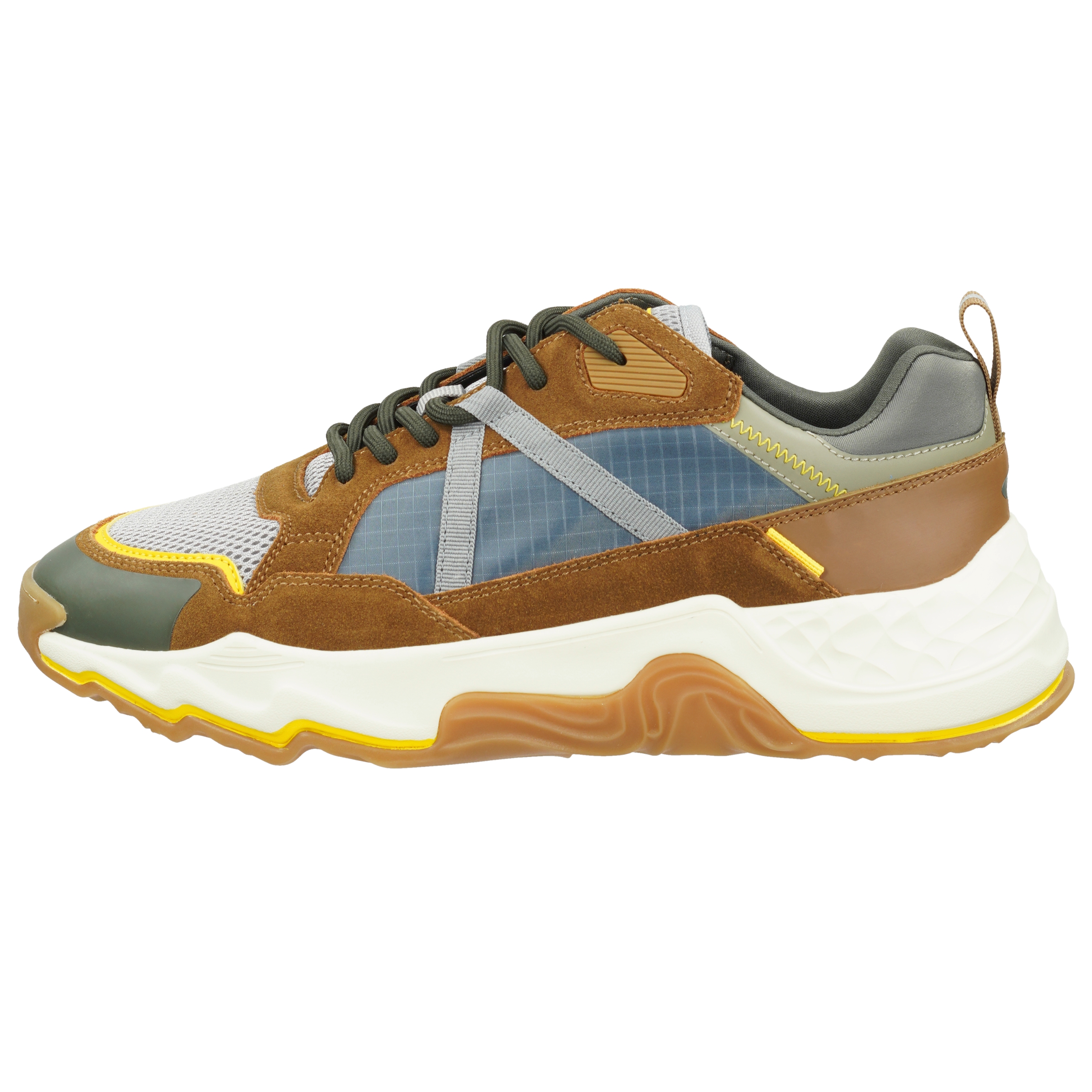 Modischer Chunky Sneaker in einem ansprechenden Materialmix aus Veloursleder und Leder. Die Innenausstattung aus Textil mit einer Innensohle mit Recovery Foam aus Recylingmaterial sorgen für einen angenehmen Tragekomfort. Die Außensohle ist aus Gummi. Alles in allem ein perfekter Schuh für Outdoor und Urban.