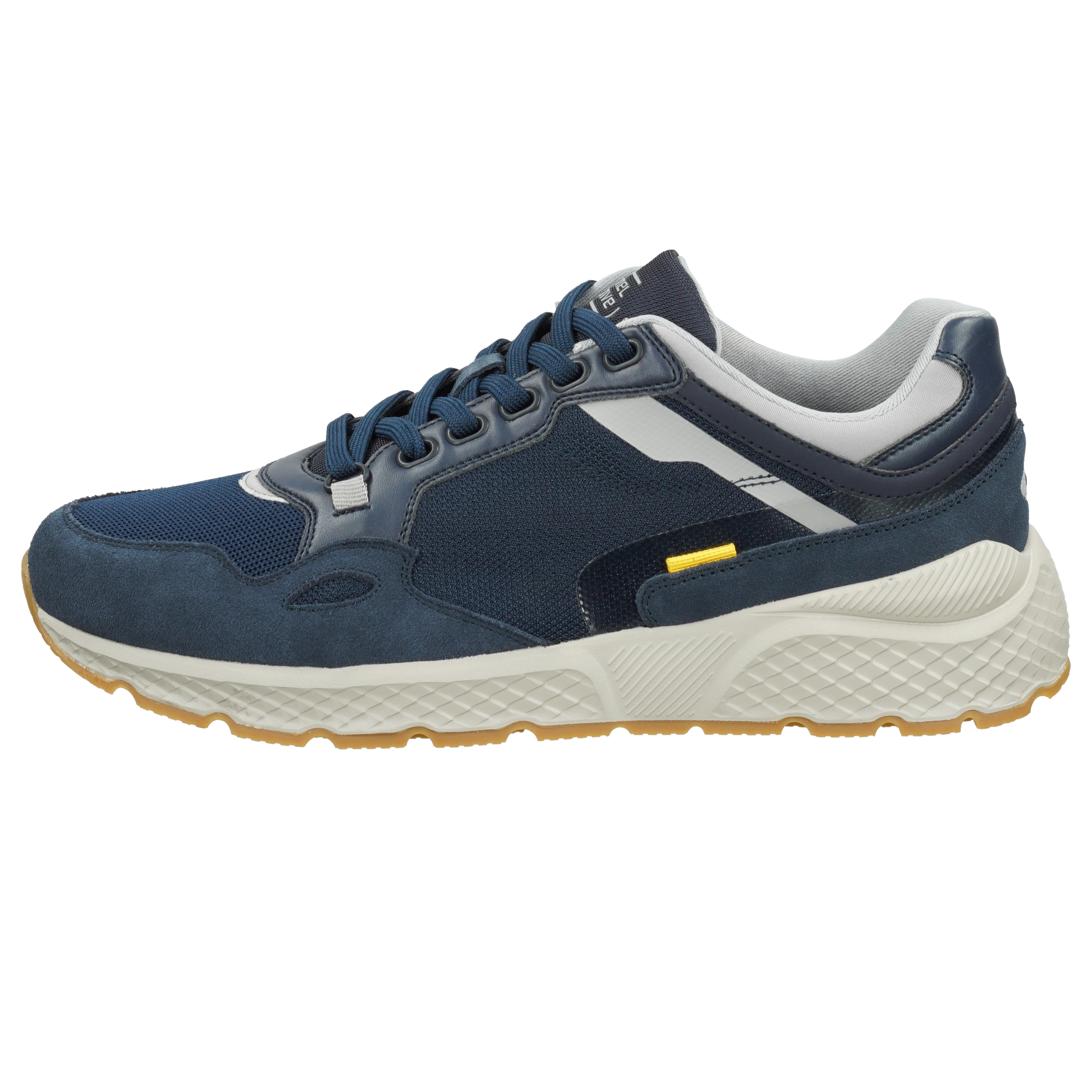 Modischer Chunky Sneaker in aufwändiger Farb- und Materialkombination absolut outdoortauglich. Das Obermaterial ist eine Kombination aus weichem Veloursleder und Leder in interessanter Verarbeitung für einen sportlichen Look. Die Innensohle ist selbstverständlich herausnehmbar. Die zweifarbige Sohle aus echtem Gummi hat ein rutschhemmendes Profil und rundet den Look mit einer auffälligen Prägung ab.