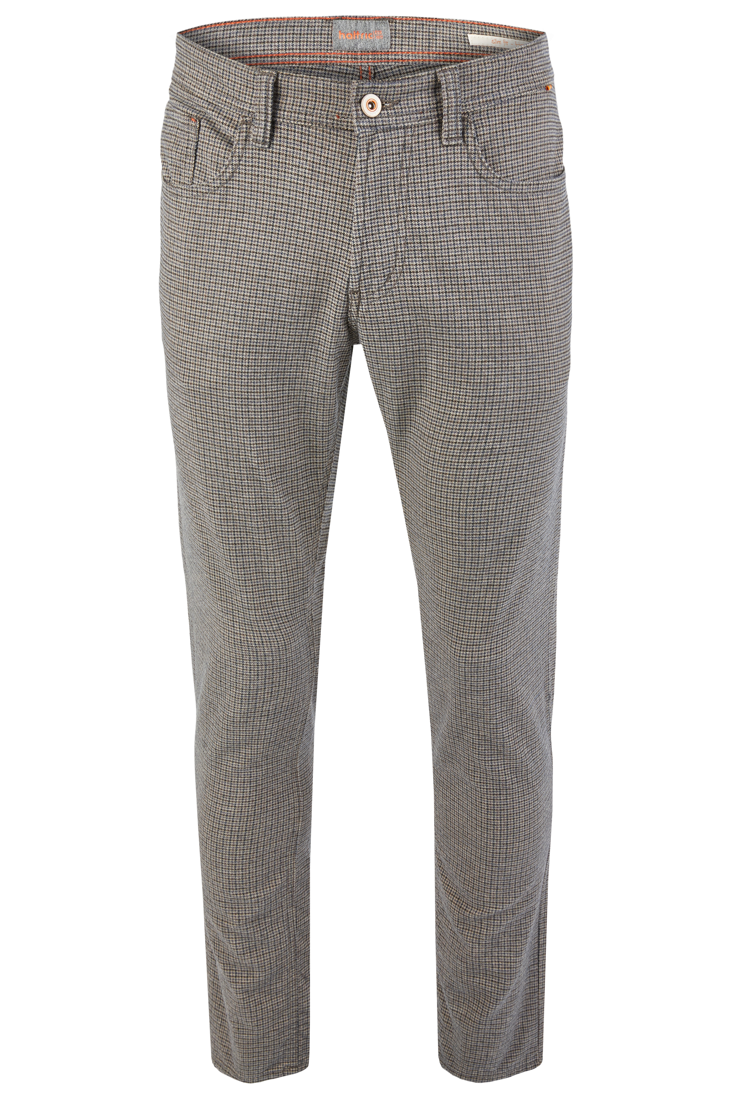 Die Herren Baumwollhose aus der aktuellen Kollektion für den kommenden Herbst und Winter 2021 bietet eine moderne Passform mit Fußweite 36 cm. Zudem sorgt das verwendete Baumwoll-Mischgewebe mit 98 % Baumwolle und 2 % Elasthan für ein besonders angenehmes Tragegefühl und ist dennoch pflegeleicht. Auch im Bereich Optik kann die hattric Baumwollhose überzeugen, bietet sie nicht nur eine schmale Schnittform, sondern auch einen angesagten Look in Wolloptik in Kombination mit dem klassischen 5-Pocket-Style. Dabei wird die Herren Baumwollhose mit einem aufwendigen Webverfahren hergestellt, welches die typischen Woll-Komponenten miteinander vereint. Als besonderes Detail bietet die hattric Baumwollhose ein farblich abgesetztes Markenlabel und Ziernähte auf den Gesäßtaschen.