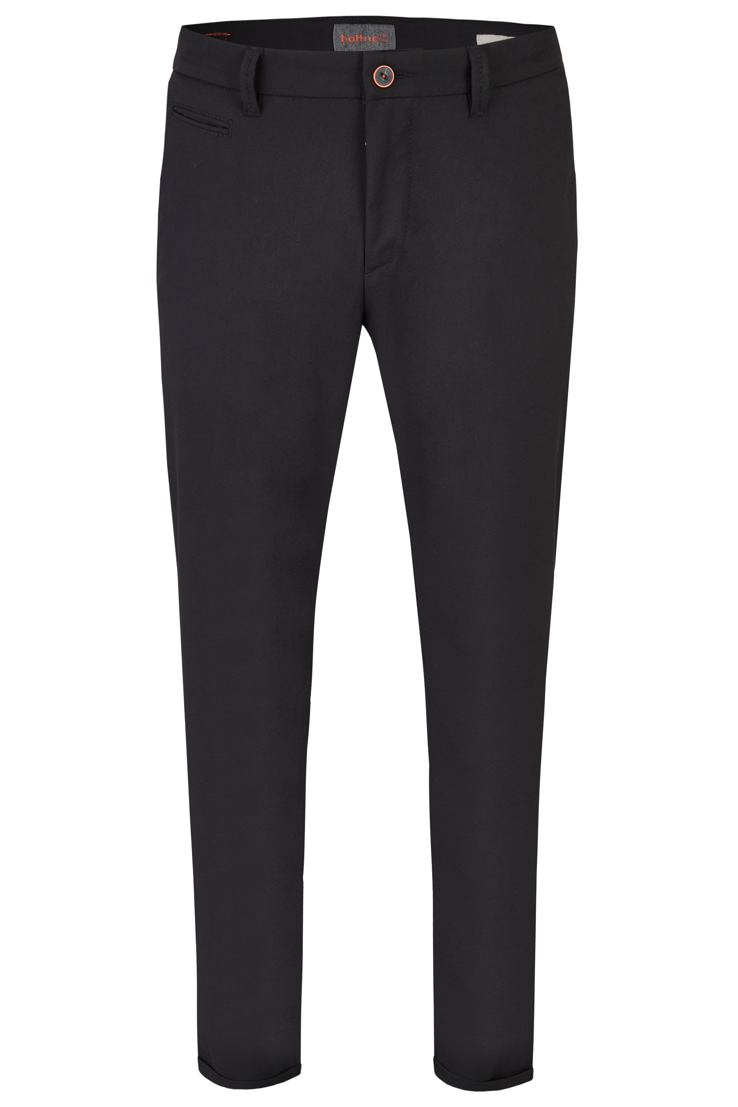 Die sommerlich leichte hattric Chinohose in Slim Fit-Passform ist aus einem Polyester-Viskose-Gemisch gearbeitet. Sie lässt sich auch bei hohen Temperaturen angenehm tragen, ein kleiner Elasthananteil sorgt für Bequemlichkeit und optimalen Tragekomfort. Zwei französische Eingriffstaschen an den Seiten sowie zwei verschließbare Paspeltaschen auf dem Gesäß bieten ausreichend Platz für Kleingeld und Kreditkarte. Die Herrenhose hat eine Fußweite von 34 cm, die schlanke Passform unterstreicht Ihren lässigen Stil, ohne nachlässig zu wirken. Kombiniert mit schmalen Shirts oder luftigen, sommerlichen Hemden in unterschiedlichen Designs, ist die hattric Chinohose ein idealer Begleiter für die Freizeit, am besten passen klassische Sneakers dazu.