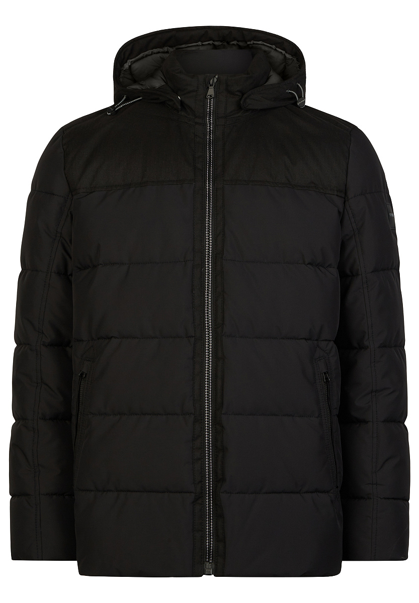 Der tonale Stoff in Wolloptik dieser Calamar Jacke trägt als Materialmixteil zum angenehmen Tragekomfort bei. Außen- und Innenfutter sind aus 100 % Polyster. Die angenehm weiche DuPont Sorona© Füllung macht diese Herrenjacke aus dem Hause Calamar zum unverzichtbaren Begleiter im Winter. Die Kapuze mit Knopf und einem Reißverschluss kann mit einer Kordel und Stopper verstellt werden. Somit bist Du bestens für die kalten Tage ausgerüstet. Die Besonderheit dieser Calamar Jacke ist der gestrickte Windschutz am Bündchen. Die abnehmbare Kapuze ermöglicht es Dir, diese Herrenjacke auch an wärmeren Tagen zu tragen.
