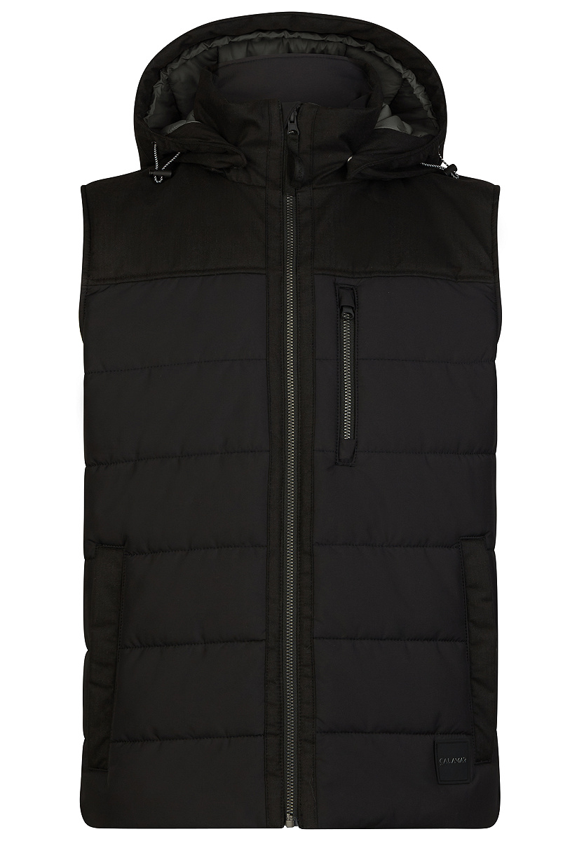 Diese praktisch und bestens funktionale Hybrid Weste für Herren ist für viele Freizeitaktivitäten ein ideales Kleidungsstück für den kommenden Herbst und Winter. Die Calamar Weste in bester Qualität und Verarbeitung ist aus einem tonaler Stoff und Materialmix in Wolloptik gefertigt. Die Herrenweste mit einer praktisch verstellbaren, abnehmbaren Kapuze mit Kordel und Stopper verfügt über eine moderne, wärmende Wattierung aus einhundert Prozent Polyester und einen dynamischen Front- und Brustreißverschluss. Die Calamar Weste biete zudem leicht zugängliche Seitentaschen mit Knopfverschluss, in denen sich unterwegs in der Natur Wichtiges sicher verstauen lässt. Die attraktive Herrenweste mit ihren horizontalen Steppnähten lässt sich vielseitig kombinieren.