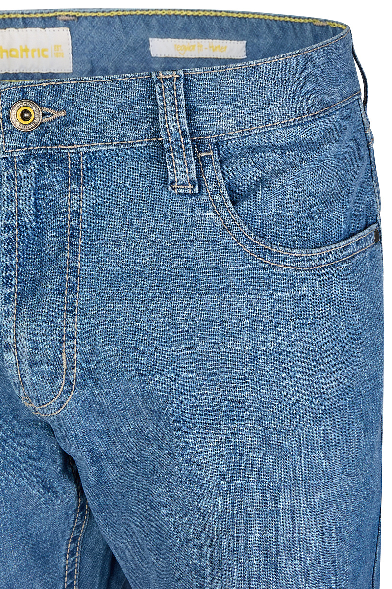 Die 5-Pocket-Hose Harris verbindet modernste Trends mit höchstem Tragekomfort. Die ultra leichte Qualität und die Eyecatcher-Details, wie die Ziernähte auf den Gesäßtaschen, machen diese Hose zu einem echten Highlight. Der Stretchanteil sorgt für eine perfekte Passform, während die authentische Denim-Optik und der Stone-Washed-Look der Hose einen lässigen Charme verleihen. Ideal für Business und Freizeit – diese Hose überzeugt auf ganzer Linie.