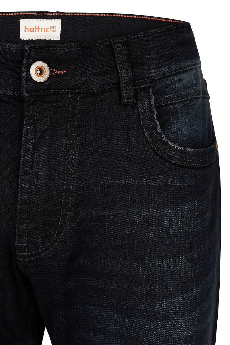 Typische Denim in modernem Look. Diese Harris Blue/Black ist eine echte hattric Jeans! Die Five-Pocket Jeans verfügt über Einschubtaschen mit zusätzlicher Coinpocket, einer Taschensicherung durch Nieten und über aufgesetzte Gesäßtaschen mit aufwendigen Details. Geschnitten ist die gerade Herrenhose in der Passform Modern Fit. Durch den Stretchanteil ermöglicht sie eine bequeme Bewegungsfreiheit, ohne den Charakter einer robusten Denim zu verlieren. Die Herrenhose wird aus 99% Baumwolle und 1% Elasthan hergestellt. Sie besticht durch den trendigen Farbton Harris Blue/Black und ihre hohe Strapazierfähigkeit.