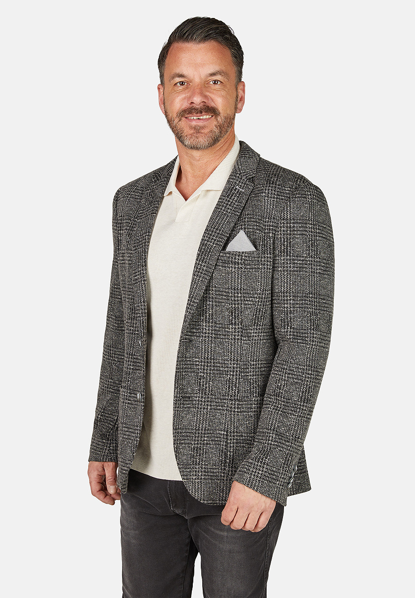 Das CALAMAR Sakko mit Karomuster ist ein Premium-Piece für Deinen Kleiderschrank. Der Einreiher mit zwei Knöpfen und das fallende Revers unterstreichen den klassischen Schnitt. Die weiche Strickqualität mit Karomuster und die halbgefütterte Verarbeitung machen dieses Herrensakko zu einer stilvollen und komfortablen Wahl.