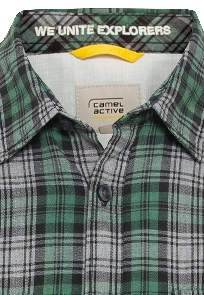 Mit diesem karierten Hemd aus reiner Baumwolle von camel active machst Du garantiert Eindruck. Die authentischen Wascheffekte durch die Garment Dyed-Färbung geben dem Hemd einen einzigartigen Vintage-Look. Die zwei Brusttaschen mit Patte bieten zusätzlichen Stauraum und die camel active Logostickerei auf der linken Brusttasche unterstreicht den exklusiven Stil. Der Kentkragen rundet das Design ab und macht das Hemd zu einem vielseitigen Begleiter für den Herbst und Winter.