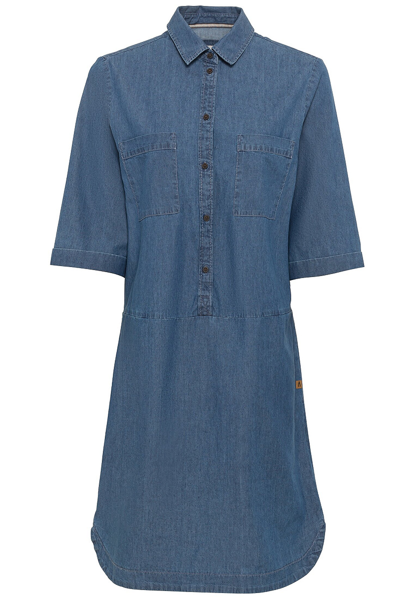 Im angesagten Denim Look kommt dieses camel active Kleid daher. Es ist Teil der neuen Frühjahr-/ Sommerkollektion von camel active. Es hat eine angesagte Indigo Dyed Färbung und zwei aufgesetzte Brusttaschen. Den Saum ziert das camel active Logo. Es ist in der Passform Regular Fit geschnitten. Der Schnitt zaubert eine tolle Figur. Das Damenkleid besteht zu 100% aus atmungsaktiver Baumwolle. Kombiniert mit Sandalen ist das Kleid der perfekte Begleiter am Strand. Mit Sneakers lädt es zur Shoppingtour ein. Wer es auf dem nächsten Gartenfest tragen will, der kombiniert es mit flachen Schuhen und einer dünnen Strickjacke.
