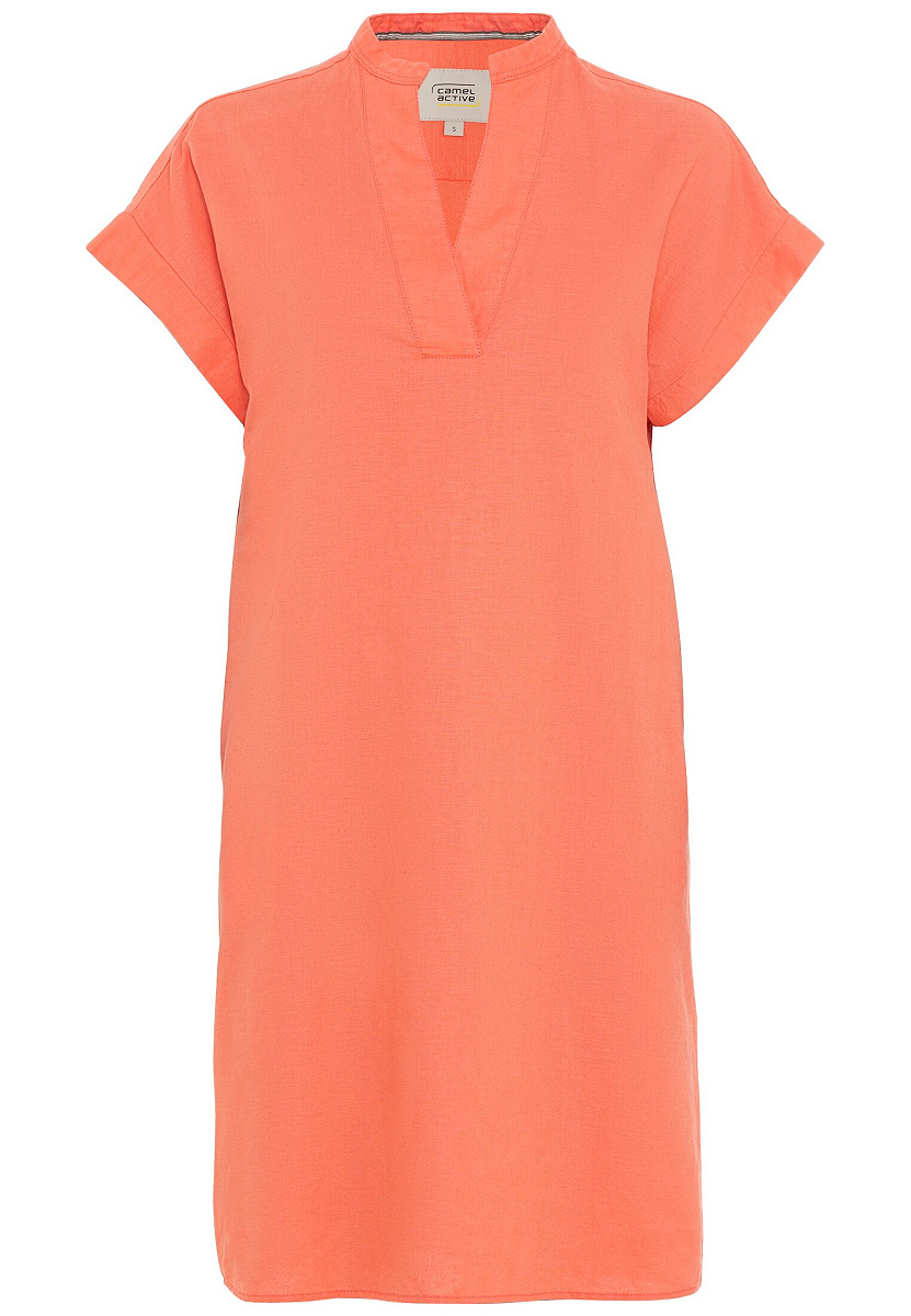 Du liebst bequeme, lässige Kleidung, die sich auch im aktiven Alltag gut tragen lässt? Dann ist dieses Damen Schlupfkleid von camel active genau richtig. Das einfarbige camel active Kleid ist aus einem Leinen-Baumwollmix gearbeitet, der sich auf der Haut angenehm kühl anfühlt. Schöne Details an dem ganz schlicht und gerade geschnittenen Kleid sind der in einen V-Ausschnitt übergehende Stehkragen, das kleine camel active Jacron Label sowie die Einschubtaschen in den seitlichen Nähten, in denen sich Kleinigkeiten wie Schlüssel oder Kreditkarte mühelos verstauen lassen. Wird es etwas kühler, lässt sich das bequeme Damen Schlupfkleid prima mit einer Jeans- oder Lederjacke kombinieren.