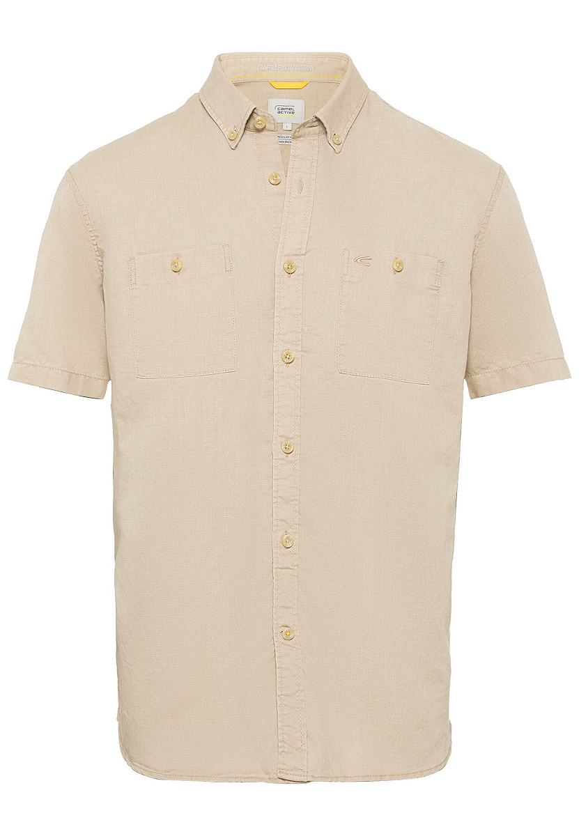 Dieses camel active Kurzarmhemd ist ein attraktives und vielseitiges Oberteil für Herren, das im Frühjahr und Sommer angenehm die Haut kühlt. Mit diesem eleganten Hemd bist Du in Beruf und Freizeit ausgezeichnet angezogen. Das Herrenhemd aus einem sommerlichen Mix aus 55 Prozent Leinen und 45 Prozent Baumwolle bietet Dir die besten Trageeigenschaften. Das camel active Kurzarmhemd verfügt über einen klassischen Button-Down-Kragen, eine Knopfleiste und zwei Brusttaschen mit Knöpfen in einer Kontrastfarbe. Das Herrenhemd der Marke camel active ist gewohnt hochwertig verarbeitet. Ein Logo von camel active ist auf der linken Brusttasche diskret sichtbar eingestickt.
