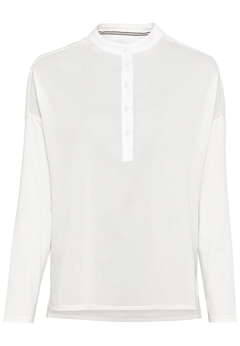 Die camel active Bluse lässt sich im Sommer und Frühjahr schön mit einer Jeanshose oder einer Chino-Hose in Szene setzen. Dank ihrer Relaxed-Fit-Passform, wird deine Figur sanft umschmeichelt. Die Damenbluse besteht zu 100 % aus Baumwolle, sodass du sie auch an kühleren Frühlingstagen im Büro tragen kannst. Die camel active Bluse verfügt über einen Mao-Kragen mit Knopfleiste, sowie über ein camel active Lable am Saum. Durch ihren dezenten Schnitt, kannst du die Damenbluse im Büro, aber auch in deiner Freizeit tragen.