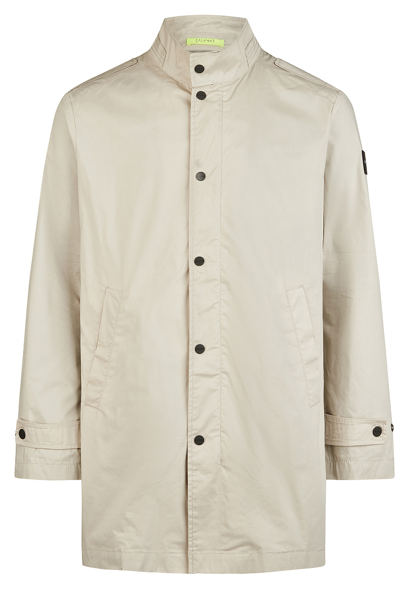 Der CALAMAR Mantel stammt aus der Frühjahr- und Sommerkollektion. Daher ist er der ideale Begleiter für die kühleren Tage in der warmen Jahreszeit. Dank der Knopfleiste hast Du die Wahl, wie weit der Mantel geschlossen oder geöffnet getragen wird. Die schmalen Druckknöpfe ermöglichen es Dir, den Mantel unkompliziert an die Wetterbedingungen anzupassen. Der Herrenmantel besitzt zwei Innentaschen, die Platz für persönliche Gegenstände bieten. Das Smartphone oder die Geldbörse werden sicher und diskret verwahrt. Die Ärmelmanschetten sind verstellbar. Da der Mantel aus einem Mix aus Polyester und Baumwolle besteht, ist der Mantel sowohl strapazierfähig als auch angenehm zu tragen.