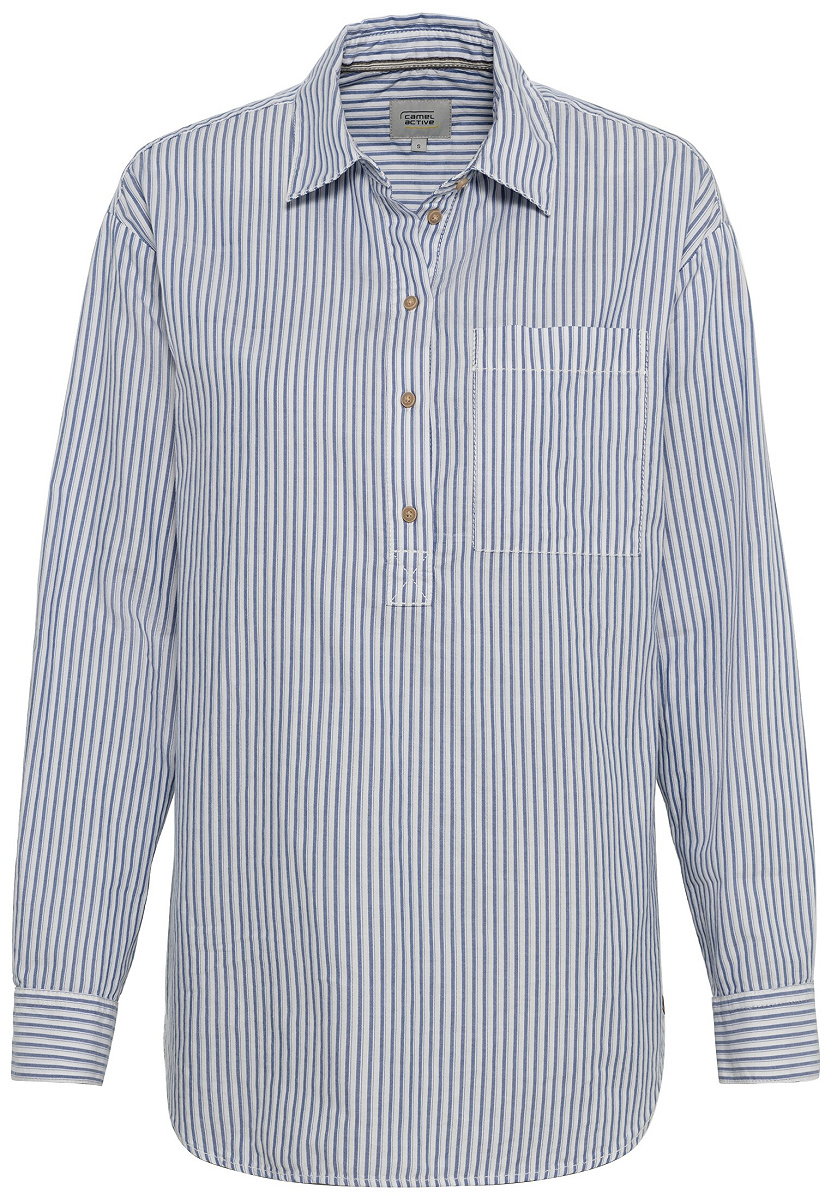 Diese sportliche und bürotaugliche camel active Bluse ist ein attraktives Kleidungsstück für Frauen mit Stil und Klasse. Die lässige und doch elegante Damenbluse aus einhundert Prozent Baumwolle in der Passform Relaxed Fit bietet einen hohen Tragekomfort und viel Bewegungsfreiheit. Diese Damenbluse verfügt über einen klassischen Kentkragen mit einer Knopfleiste, über Bündchen mit Knöpfen an den langen Ärmeln und eine Brusttasche. Die dezent gestreifte camel active Bluse ist ein vielseitiges, robustes und pflegeleichtes Oberteil in bester Verarbeitung, an dem Du lange Deine Freude haben wirst. Die moderne und zeitlose camel active Bluse macht bei vielen Gelegenheiten eine ganz ausgezeichnete Figur.