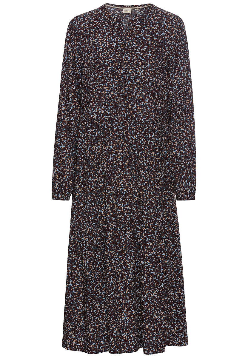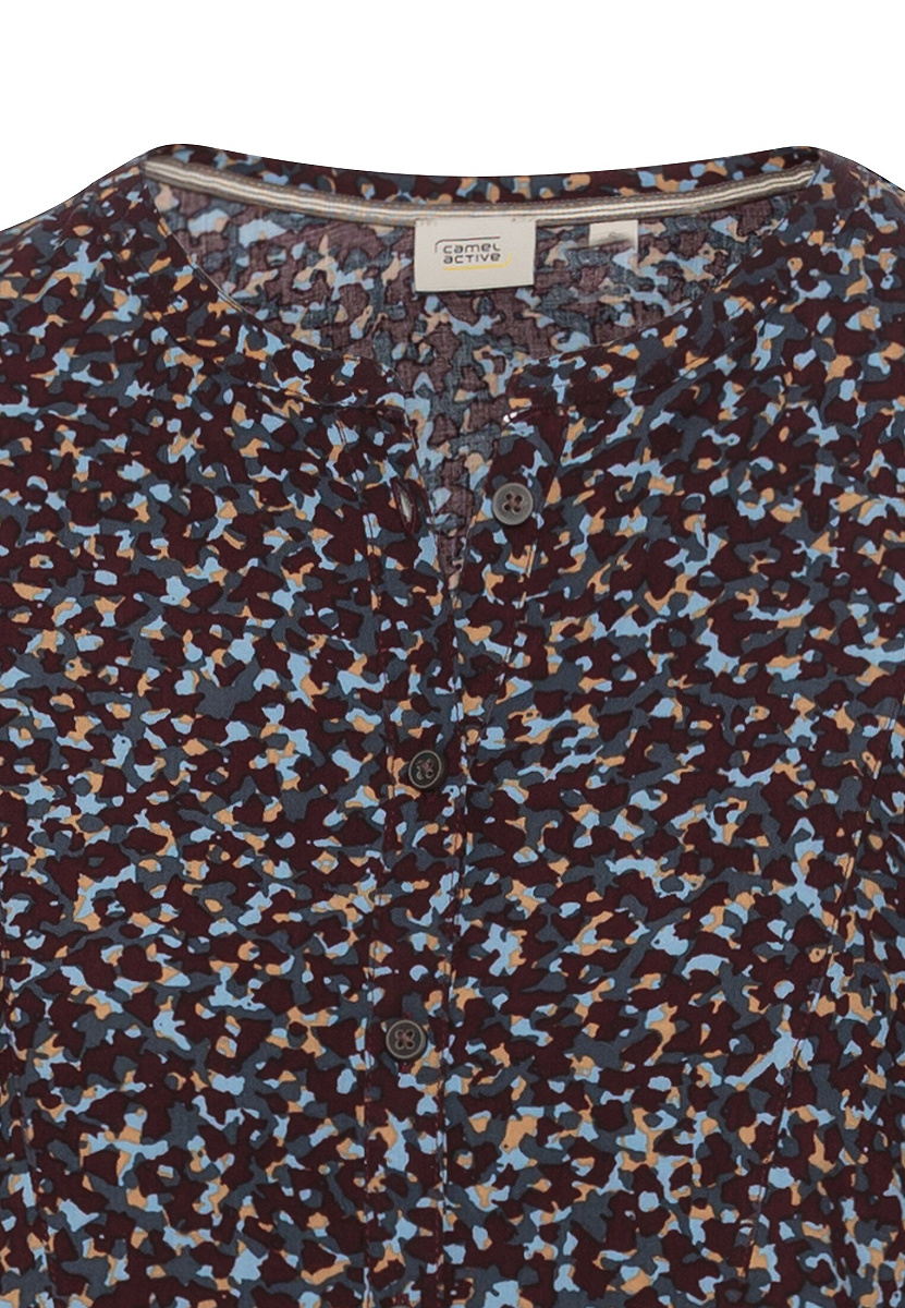 Damen-Schlupfkleid aus 100% Viskose mit leichten Rüschen, Allover-Blumenprint und Regular Fit. camel active Markenlabel am Saum sorgt für dezente Markenakzente.