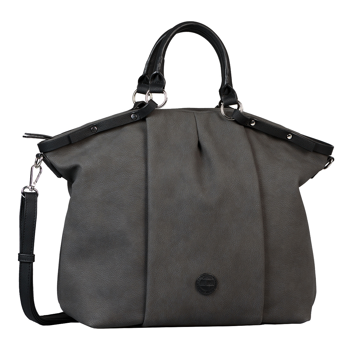 Die Tasche Melany aus fein genarbtem Nubuk-Imitat mit weicher Faltenkonstruktion auf der Vorderseite, dem runden Logo-Patch sowie der speziell ausgearbeiteten Schulterriemenanbringung, fügt sich harmonisch in die Kollektion ein.
