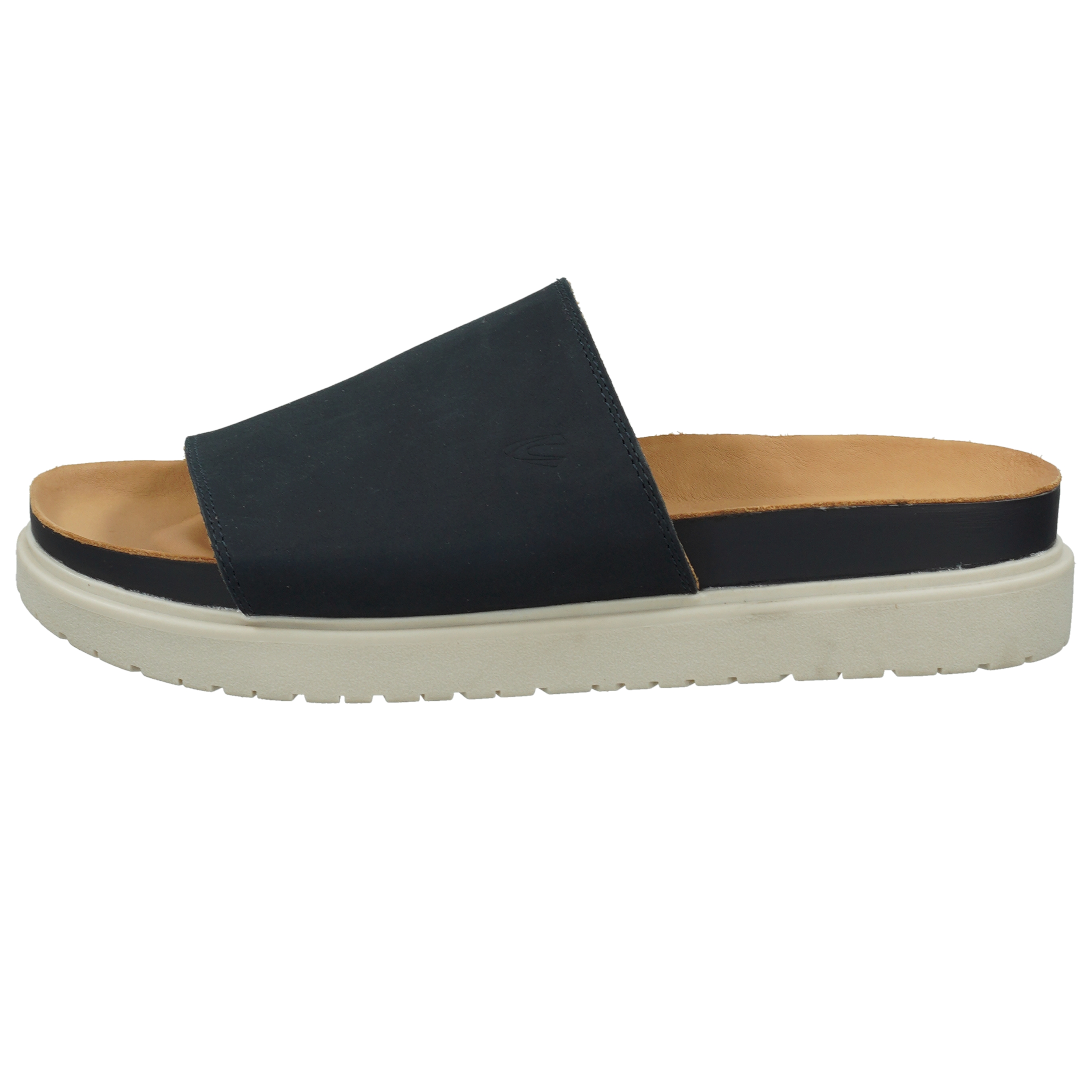 Sommerlicher Slipper mit einem Obermaterial aus Nubuk. Die höhere EVA Sohle in weiß gibt dem Schuh einen sportlichen Touch und sorgt mit der Leder-Decksohle für einen angenehmen Tragekomfort - besonders beim Barfußtragen.