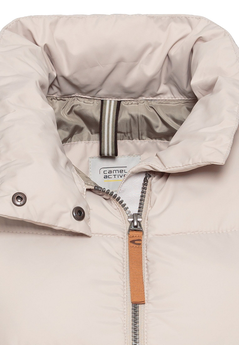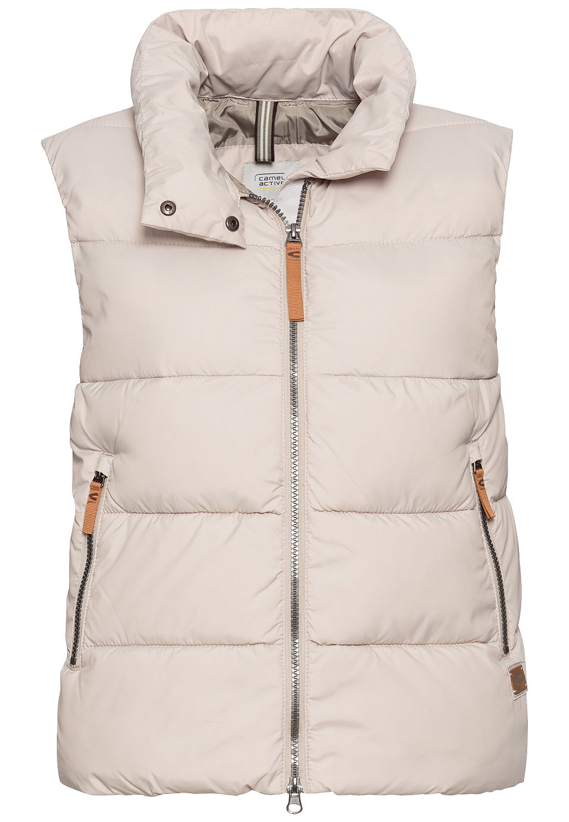 Damen-Steppweste aus recyceltem Polyester, wasserabweisend, winddicht und daunenfrei. Zwei seitliche Reißverschlusstaschen und camel active Markenlabel am Saum machen sie zum funktionalen Herbst/Winter-Basic.