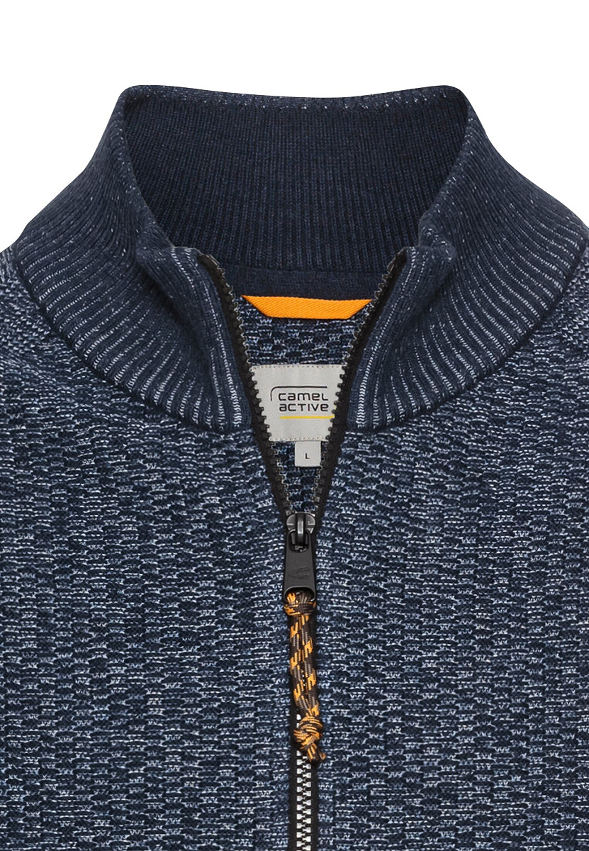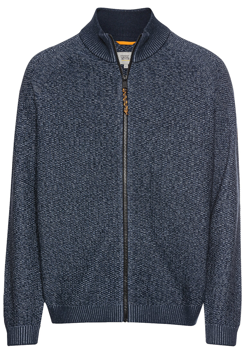 Auch in dieser Variante begeistert die camel active Strickjacke mit dreifarbigem Mouline-Strick, Stehkragen und Markenlogo. Regular Fit sorgt für Komfort.