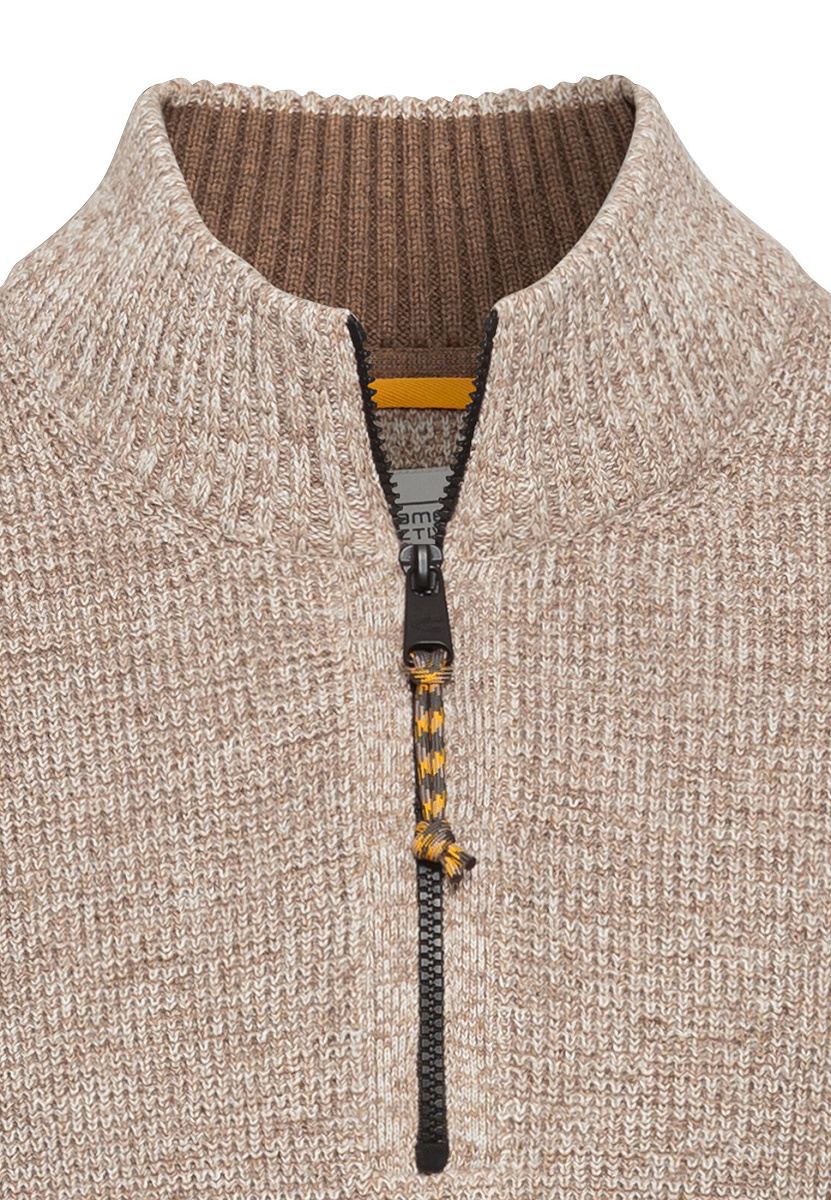 Dieser camel active Troyer überzeugt durch Rippstrick-Struktur, Troyerkragen mit Reißverschluss und Regular Fit. Ein dezentes Markenlabel am Ärmel rundet das Design ab.