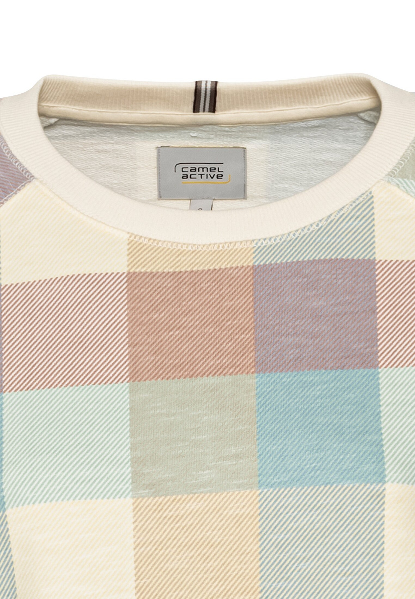 Dieses Sweatshirt aus 100% Baumwolle besticht durch ein multicolor Karomuster und Strickbündchen an den Ärmeln. Der offene Saum und das camel active Markenlabel aus Jacron am Saum verleihen dem Look eine moderne Note. Regular Fit für komfortables Tragen im Herbst/Winter.