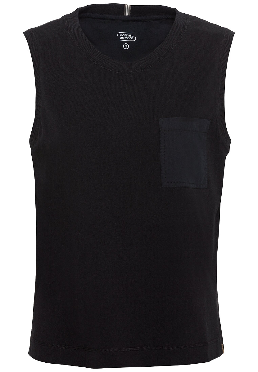Das ärmellose Damen camel active T-Shirt von camel active ist das perfekte Basic für den Sommer. Das Damen T-Shirt besteht aus hochwertiger Baumwolle und bietet durch den Materialmix aus Baumwoll-Jersey im Vorderteil und Baumwoll-Popeline im Rücken einen angenehmen Tragekomfort. Das T-Shirt verfügt über eine praktische Brusttasche auf der linken Seite und ist mit dem camel active Markenlabel am Saum versehen. Die breiten Träger und der lockere Schnitt sorgen für einen lässigen Look und machen das T-Shirt zum idealen Begleiter an warmen Tagen. Das camel active T-Shirt kann vielseitig kombiniert werden und eignet sich sowohl für den Alltag als auch für Freizeitaktivitäten. Bestelle jetzt das Damen T-Shirt und überzeuge dich von seiner Qualität und dem stylishen Design!