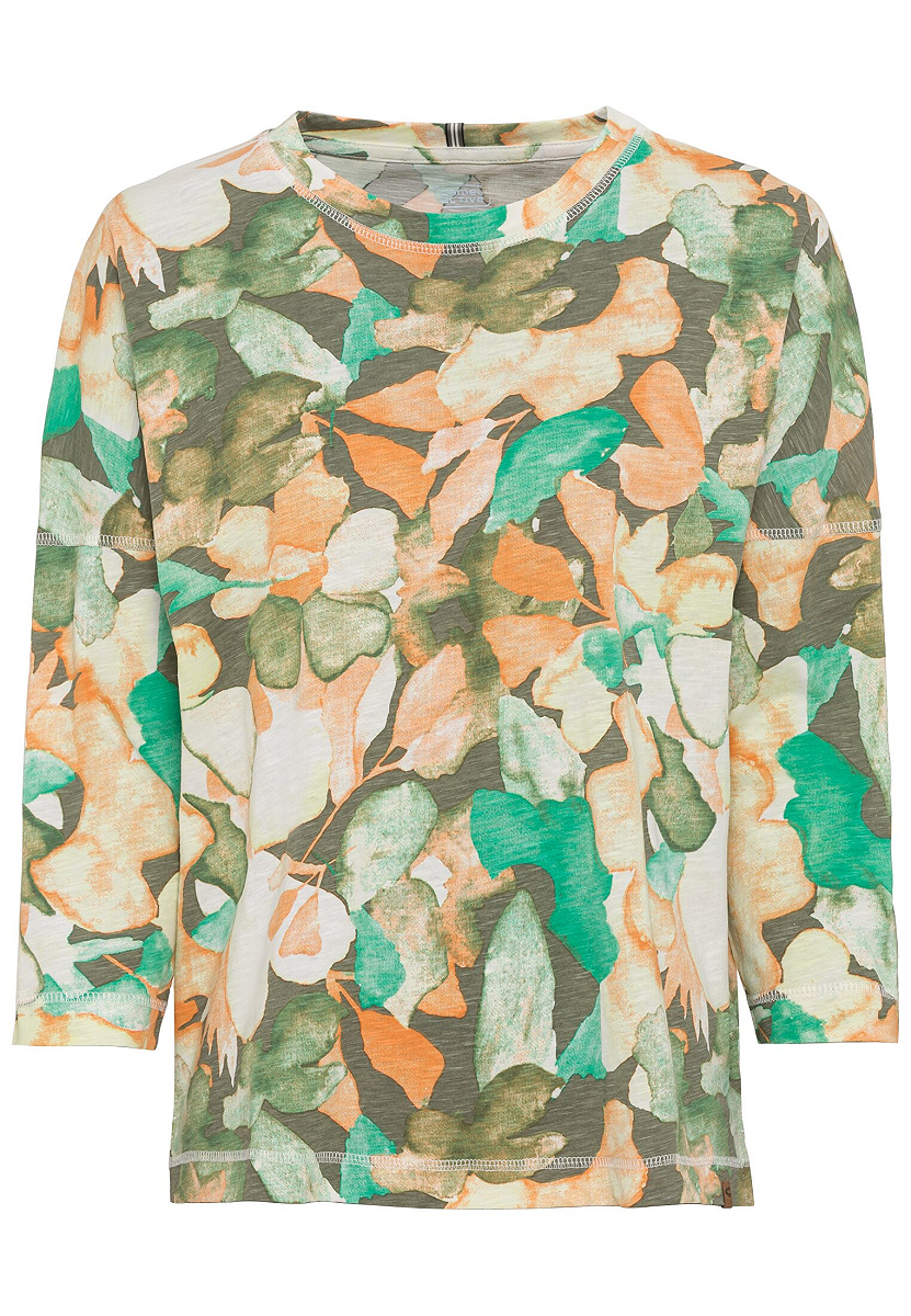 Dieses Damen T-Shirt ist ein optisches Highlight Ein farbenfroher All-over-Print aus Blüten und Blättern in verwaschener Optik macht das camel active T-Shirt zu einem ganz besonderen Kleidungsstück. Die legere Passform mit Rundhalsausschnitt und 3/4-Ärmeln macht das Shirt zu einem Oberteil, das sich mit Hosen, Röcken und Shorts im Beruf und Alltag hervorragend kombinieren lässt. Das Damen T-Shirt besteht aus Slub-Jersey, gefertigt aus Bio-Baumwolle, und bietet durch die Relaxed Fit-Passform angenehmen Tragekomfort. Taille, Ärmel und Rundhalsausschnitt sind gesäumt, das betont den legeren Look. Die authentischen Wascheffekte wurden durch eine Garment Dyed-Färbung erzeugt. Achte bitte unbedingt auf die Waschanleitung, damit Du lange Freude an Deinem camel active T-Shirt hast.